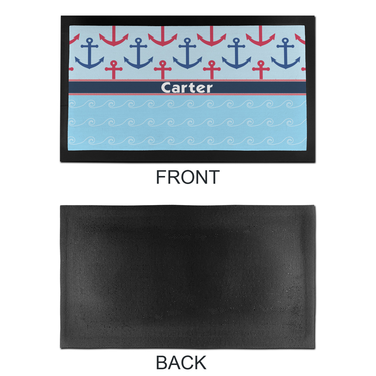 This fun nautical design features a versatile light blue background with red and blue anchors pattern on the top with coordinating light blue ocean waves on the bottom. A red stripe with a nautical darker blue rope top and bottom brings both patterns together to create a beautiful nautical design.