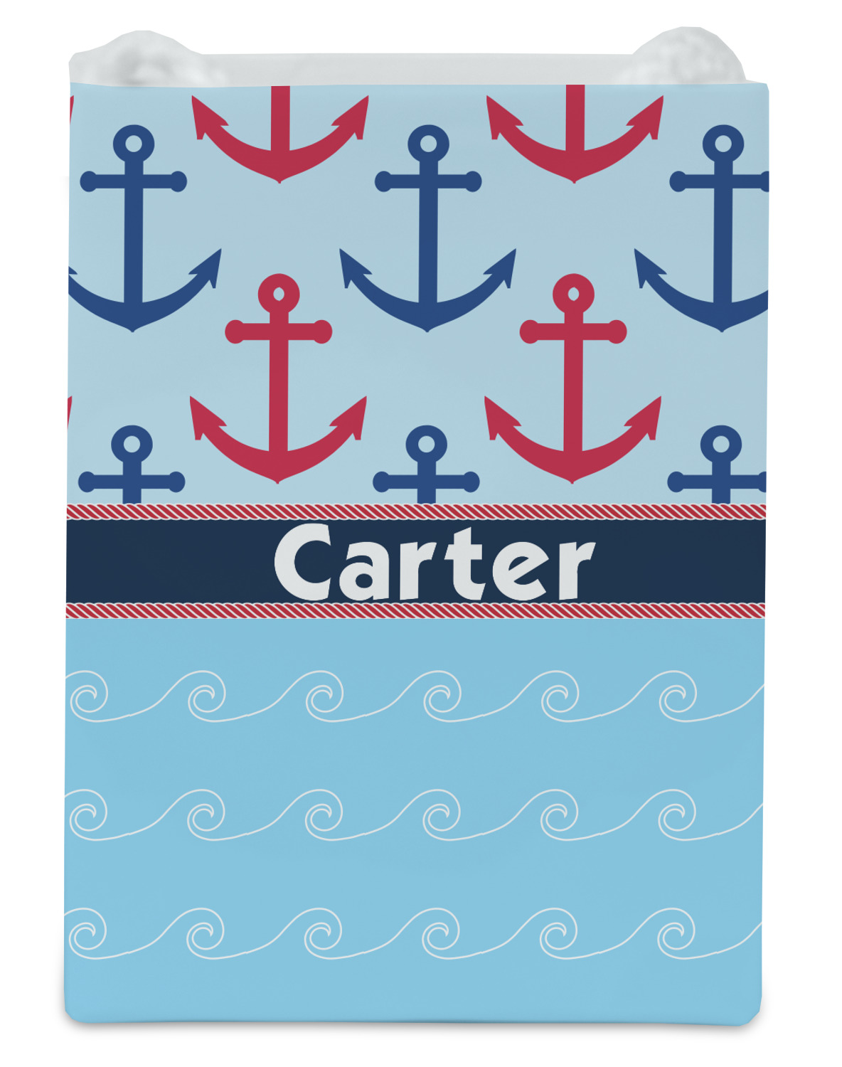 This fun nautical design features a versatile light blue background with red and blue anchors pattern on the top with coordinating light blue ocean waves on the bottom. A red stripe with a nautical darker blue rope top and bottom brings both patterns together to create a beautiful nautical design.