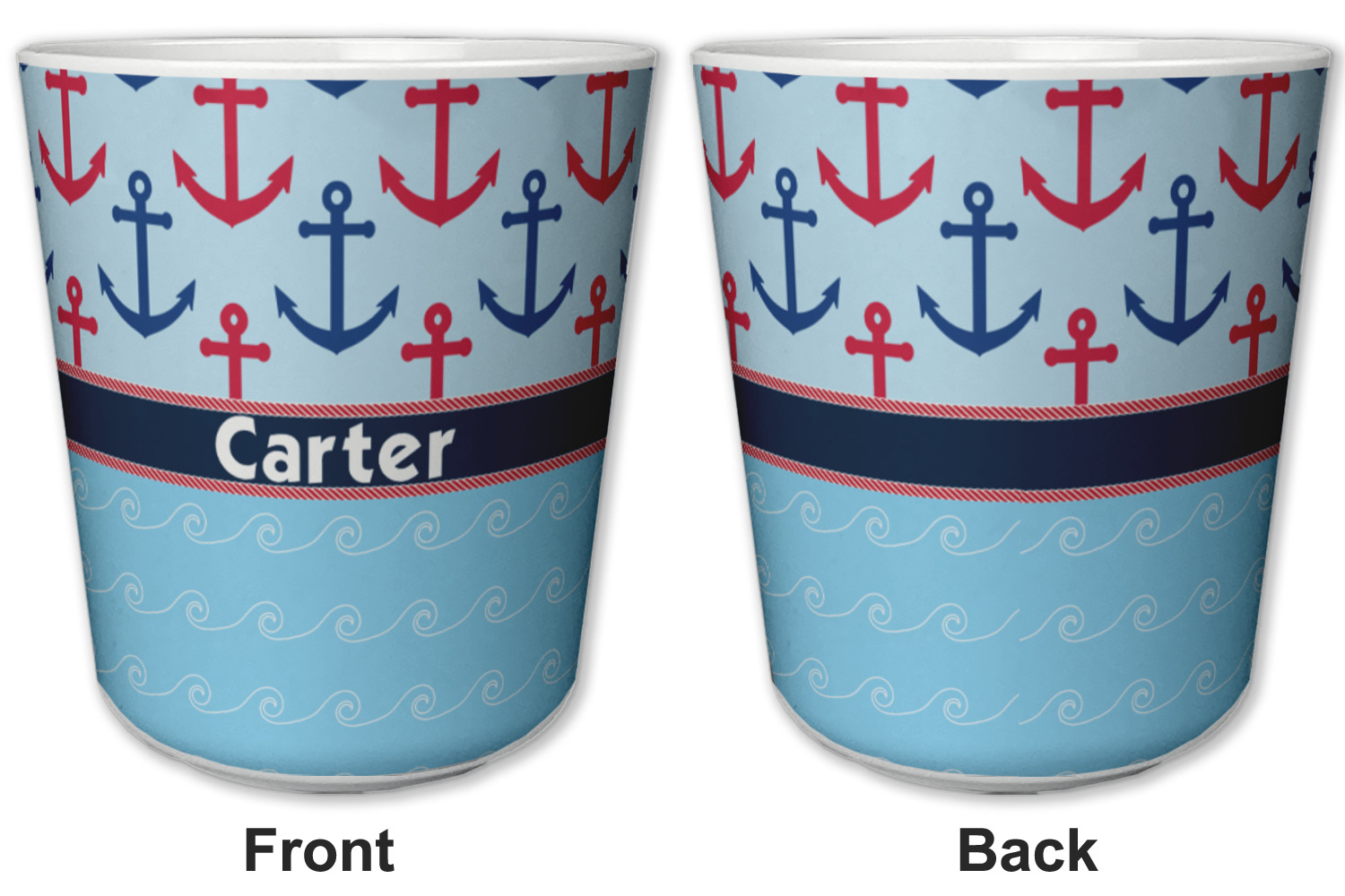 Made from a durable plastic, these tumbler cups are strong enough to withstand daily use and are perfect for young children. Each of these personalized plastic cups holds 6 ounces and measure at approximately 3" x 3" x 3.25". Place them in the bathroom as a rinsing cup, or give them to your kids during mealtimes. These 6 oz. plastic cups are BPA free, microwave and dishwasher safe, for your convenience. Your personalized design is displayed across the entire outside of this cup, while the inside is white in color to make your customization really stand out.