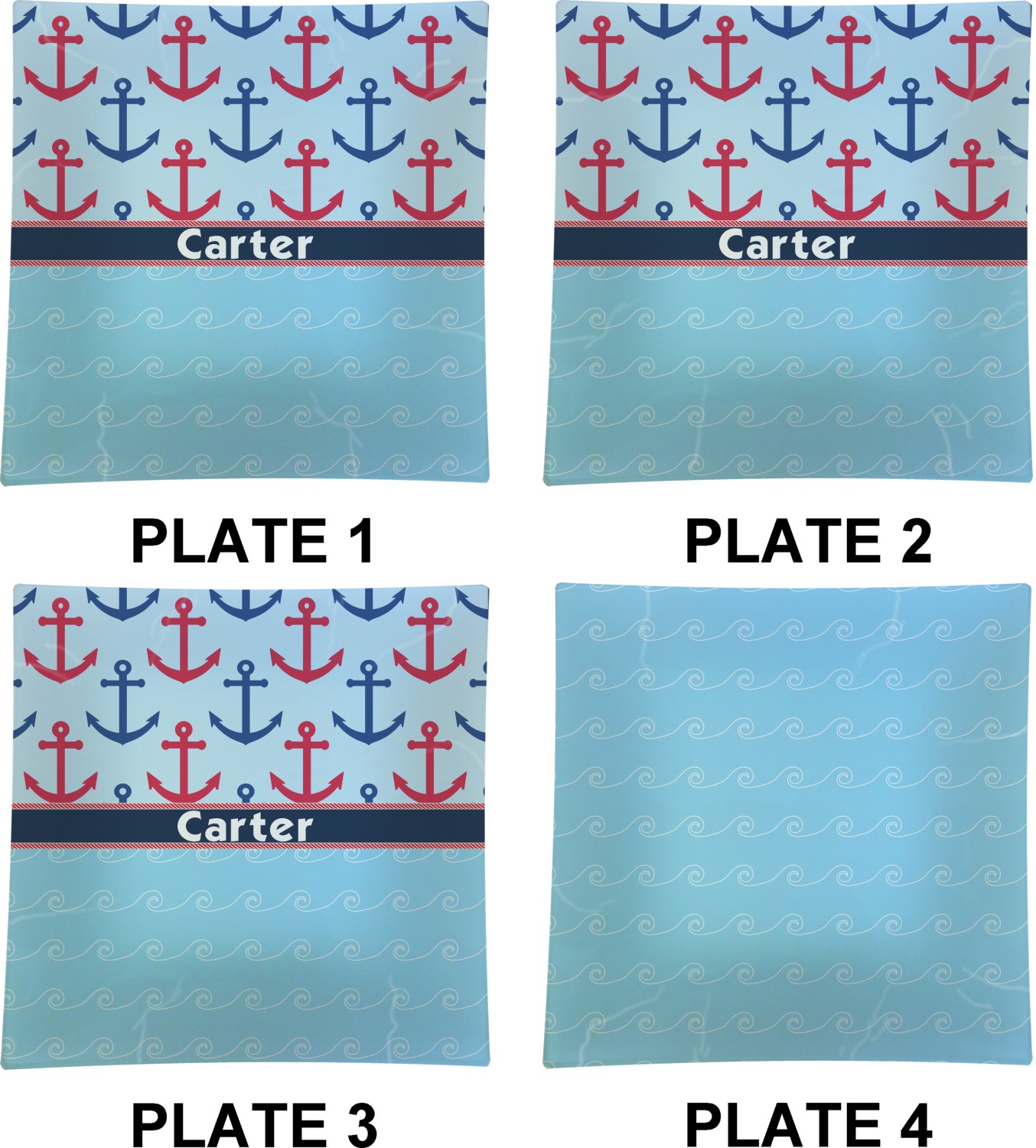 Coastal / Beach Style Designs for Glass Square Lunch / Dinner Plates 9.5" - Set of 4