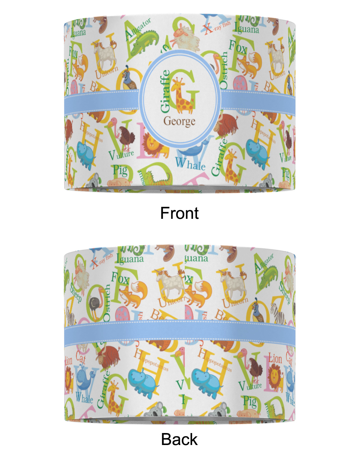 This animal alphabet design is perfect for babies and toddlers. The background consists of animals associated with all 26 letters of the alphabet. A for Alligator, B for Bear, C for Cat - all the way to W for Whale, X for X Ray Fish and Z for Zebra. We chose a white background for our design - however the background is re-colorable and also looks great with any pastel color.