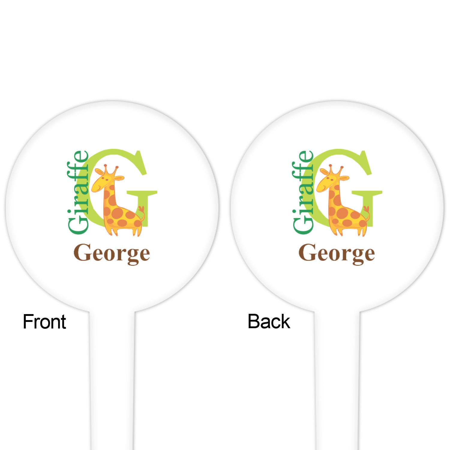 The round disc on these food & drink picks can be customized and personalized to your specifications. Your image will be printed in full color on one side or both sides. You can use the same image on both sides or use two different images.