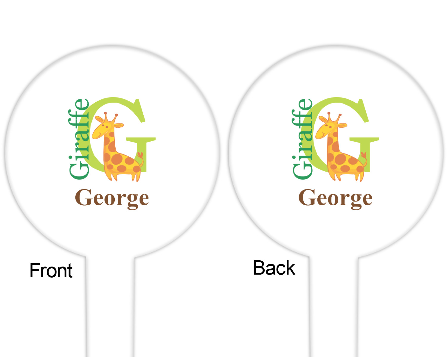 The round disc on these food & drink picks can be customized and personalized to your specifications. Your image will be printed in full color on one side or both sides. You can use the same image on both sides or use two different images.