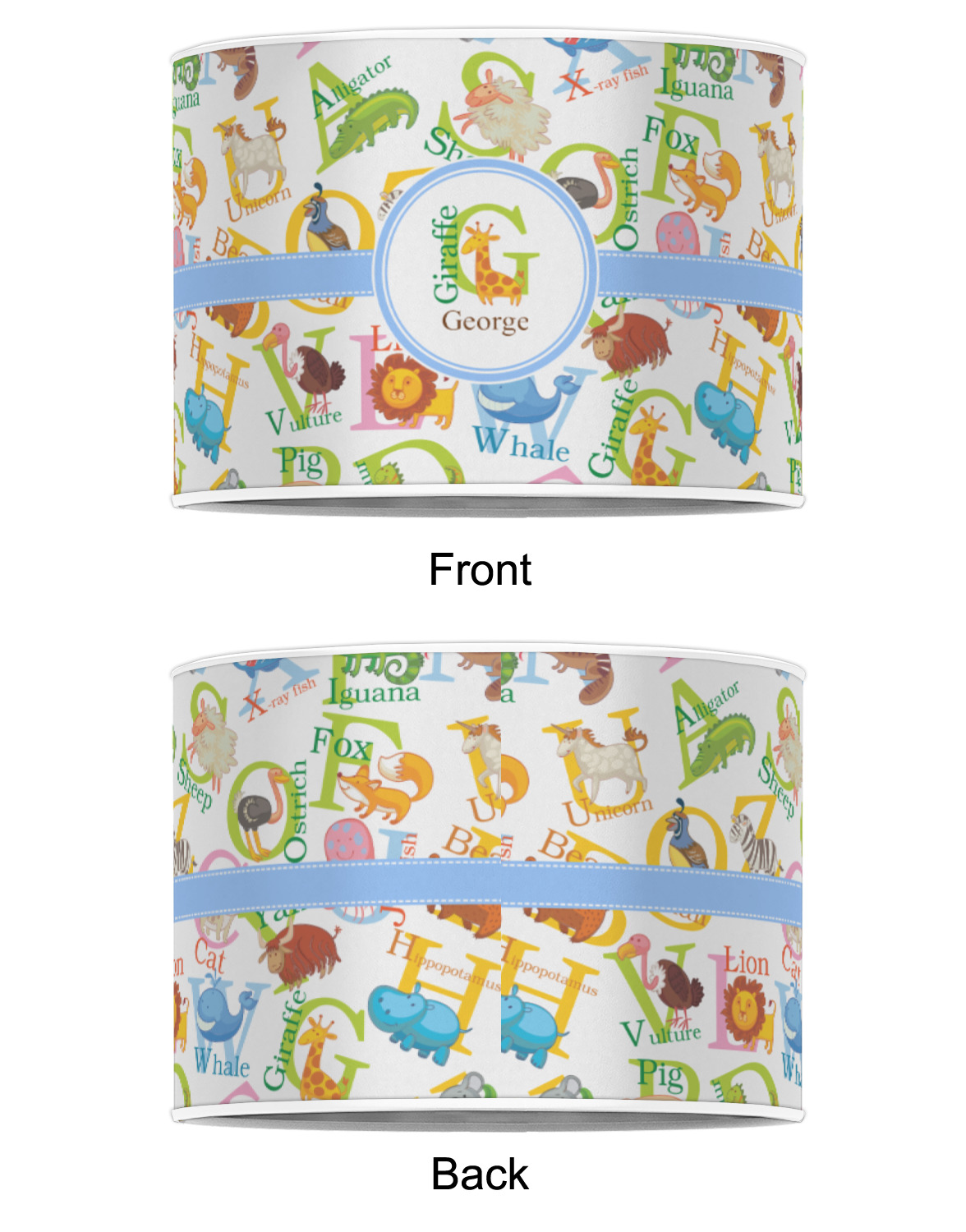 Our customized lamp shades also come in 3 different sizes: 8", 12" and 16", measuring at 8" in diameter by 6" tall, 12" in diameter by 8" tall, and 16" in diameter by 10" tall, respectively.