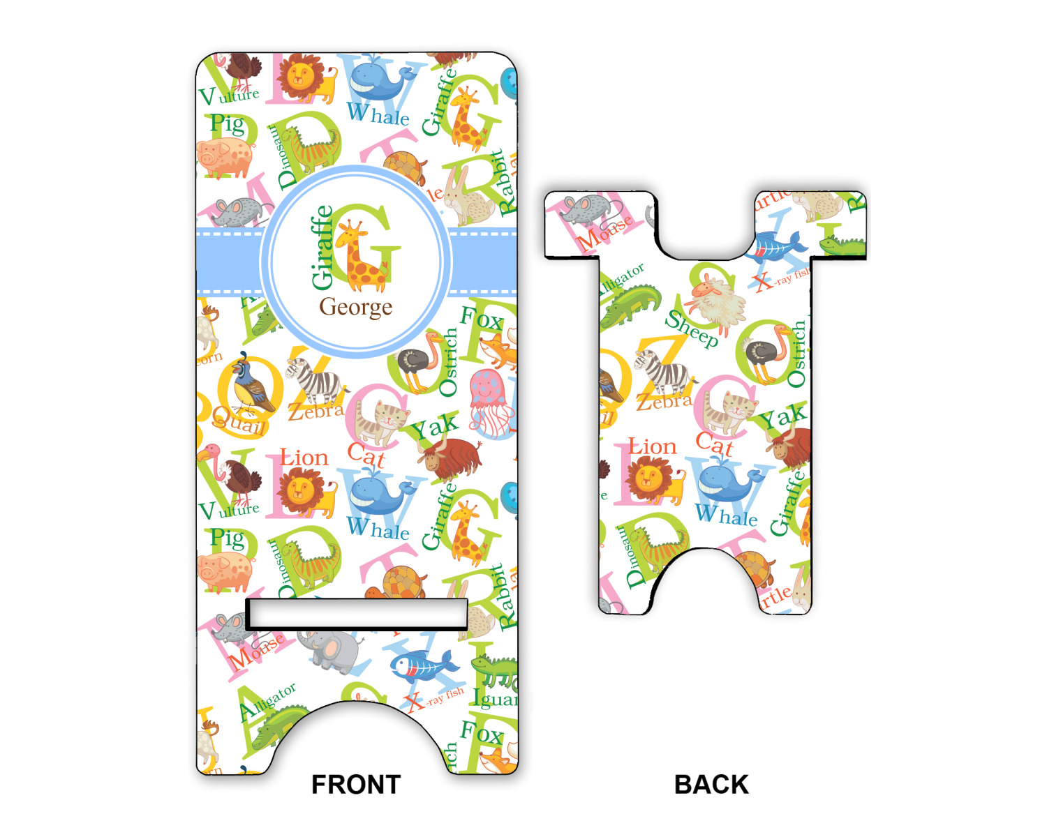 This animal alphabet design is perfect for babies and toddlers. The background consists of animals associated with all 26 letters of the alphabet. A for Alligator, B for Bear, C for Cat - all the way to W for Whale, X for X Ray Fish and Z for Zebra. We chose a white background for our design - however the background is re-colorable and also looks great with any pastel color.