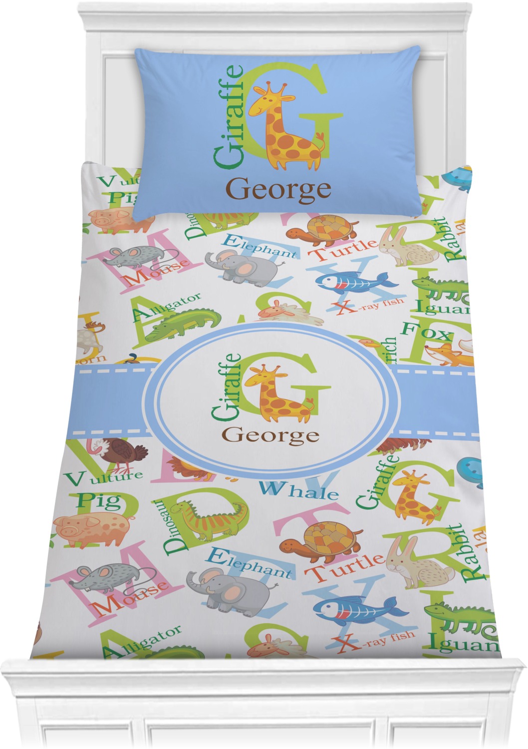 This animal alphabet design is perfect for babies and toddlers. The background consists of animals associated with all 26 letters of the alphabet. A for Alligator, B for Bear, C for Cat - all the way to W for Whale, X for X Ray Fish and Z for Zebra. We chose a white background for our design - however the background is re-colorable and also looks great with any pastel color.