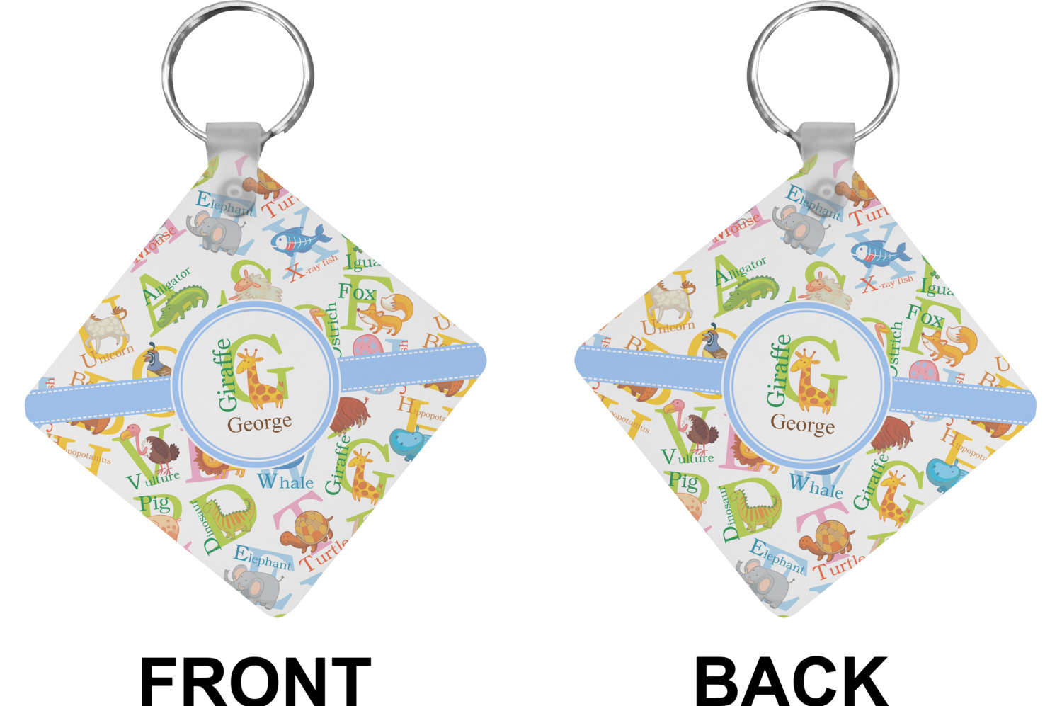 Our personalized keychains attach to the included metal, split key ring with a plastic, removable snap. Since a metal ring is included with your purchase, you have the liberty to keep your keys together on the ring, with or without your unique keychain. We offer this keychain in three different shapes: circle, heart, or diamond. We print your personalized design(s) on both sides of the key chain, and the surface has a glossy, reflective finish that only emphasizes your design. Each keychain is approximately 2.25 by 2.25 inches.