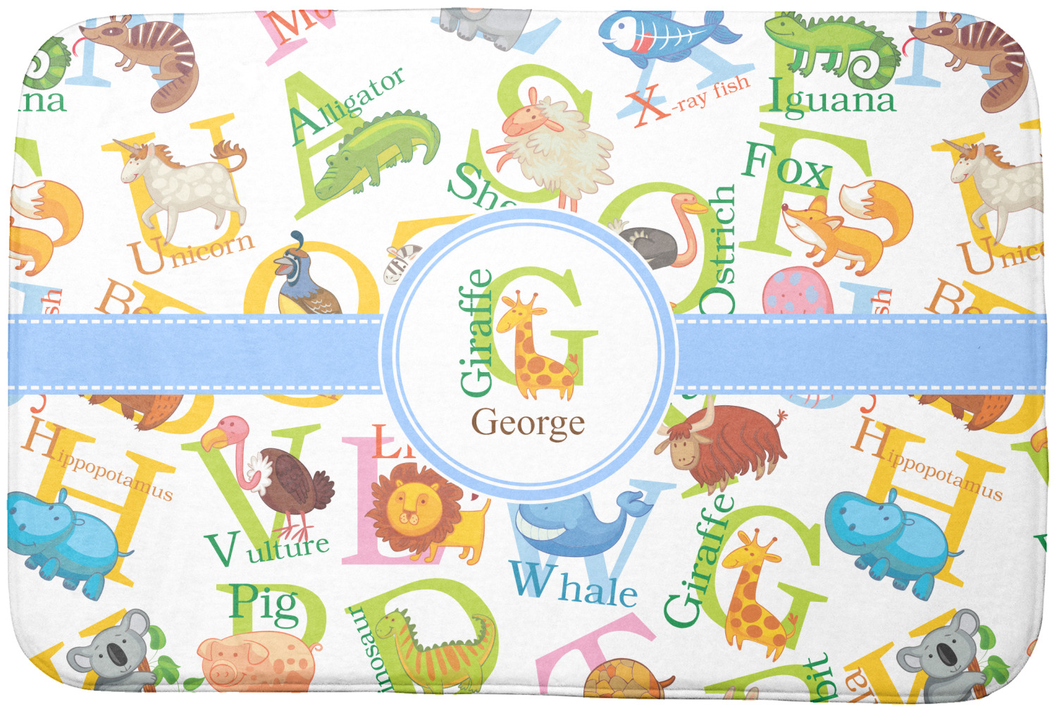 This animal alphabet design is perfect for babies and toddlers. The background consists of animals associated with all 26 letters of the alphabet. A for Alligator, B for Bear, C for Cat - all the way to W for Whale, X for X Ray Fish and Z for Zebra. We chose a white background for our design - however the background is re-colorable and also looks great with any pastel color.