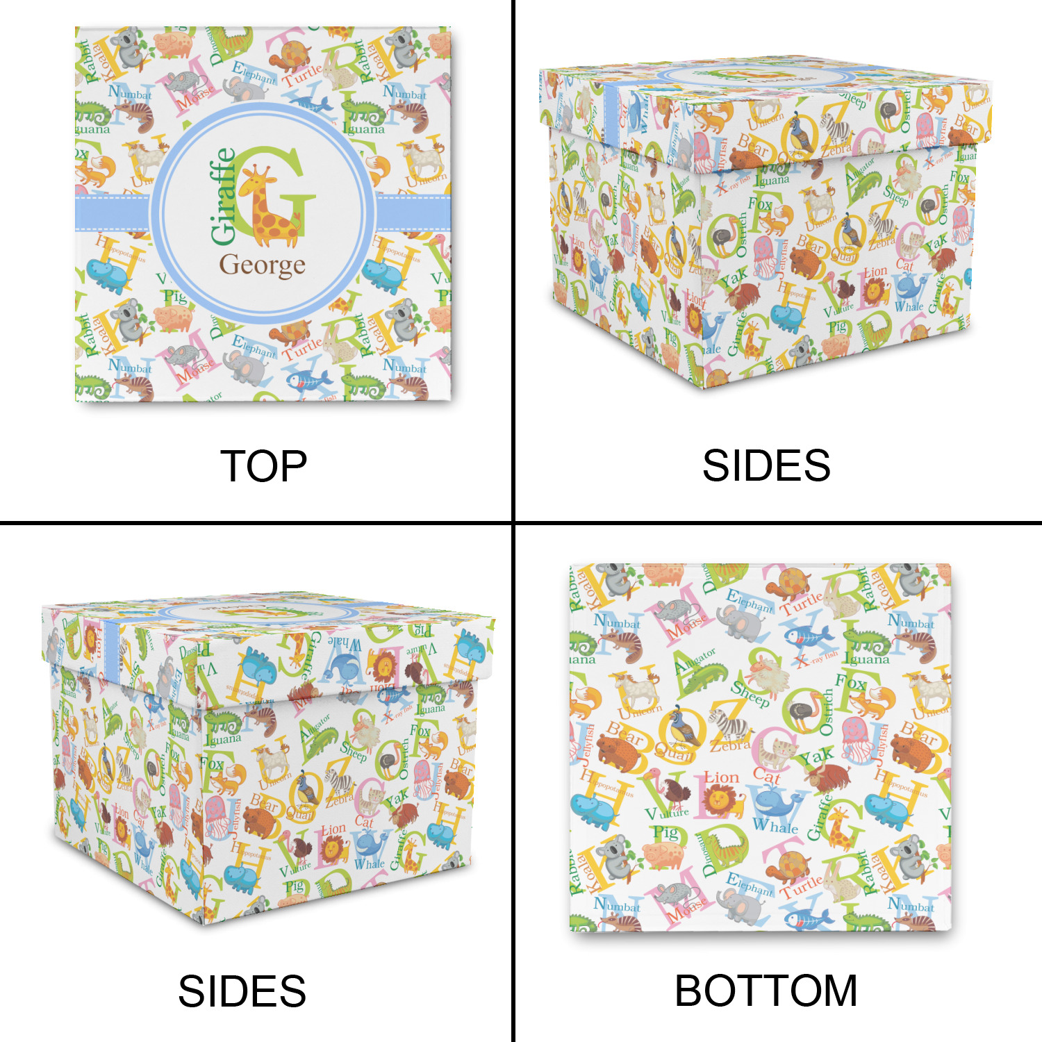 This animal alphabet design is perfect for babies and toddlers. The background consists of animals associated with all 26 letters of the alphabet. A for Alligator, B for Bear, C for Cat - all the way to W for Whale, X for X Ray Fish and Z for Zebra. We chose a white background for our design - however the background is re-colorable and also looks great with any pastel color.