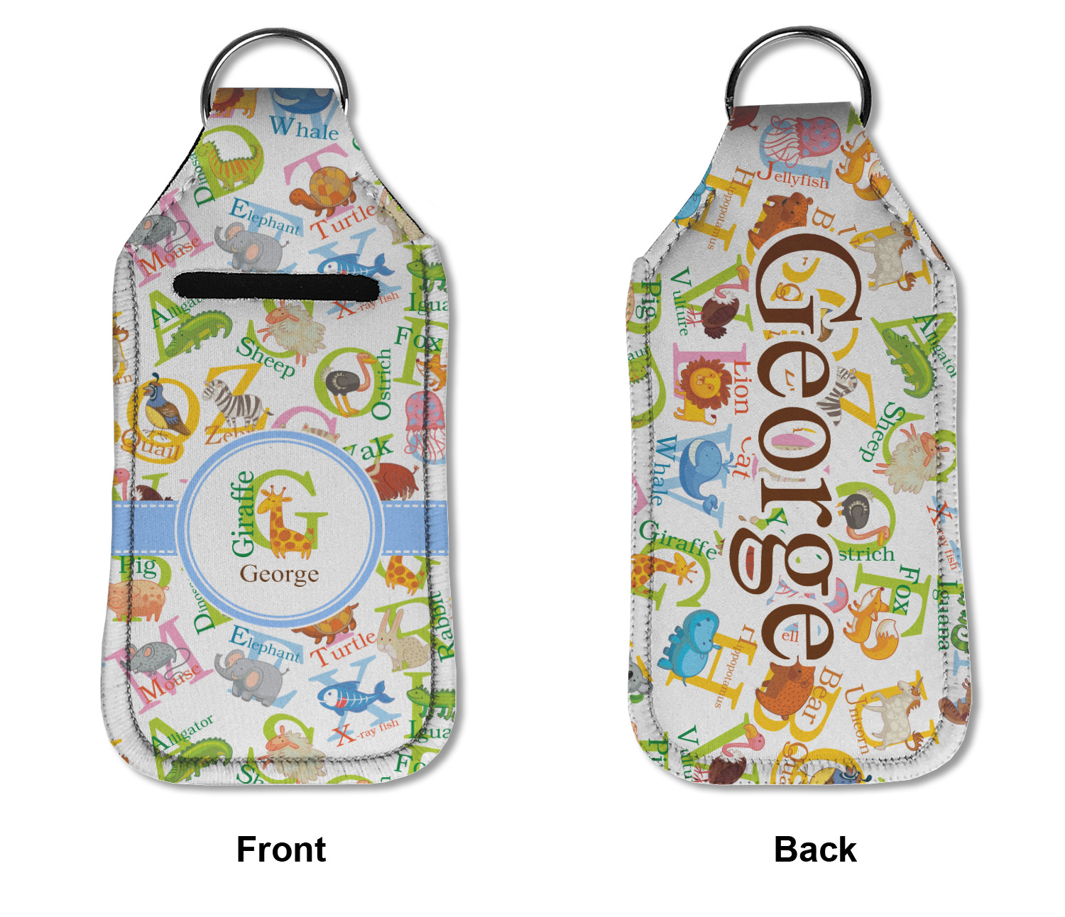 Each hand sanitizer holder comes with its own empty travel-sized, refillable hand sanitizer sure to fit snug in your customized sanitizer case! Our hand sanitizer cases are a durable, yet soft neoprene material sure to last any daily activities or travel agenda. Customize and personalize a hand sanitizer bottle holder with one of our two sizes - small (4.25" x 2.25") or large (5.5" x 2.5"). Each travel sanitizer holder comes with a keyring for attachment on bags, keys, or more!