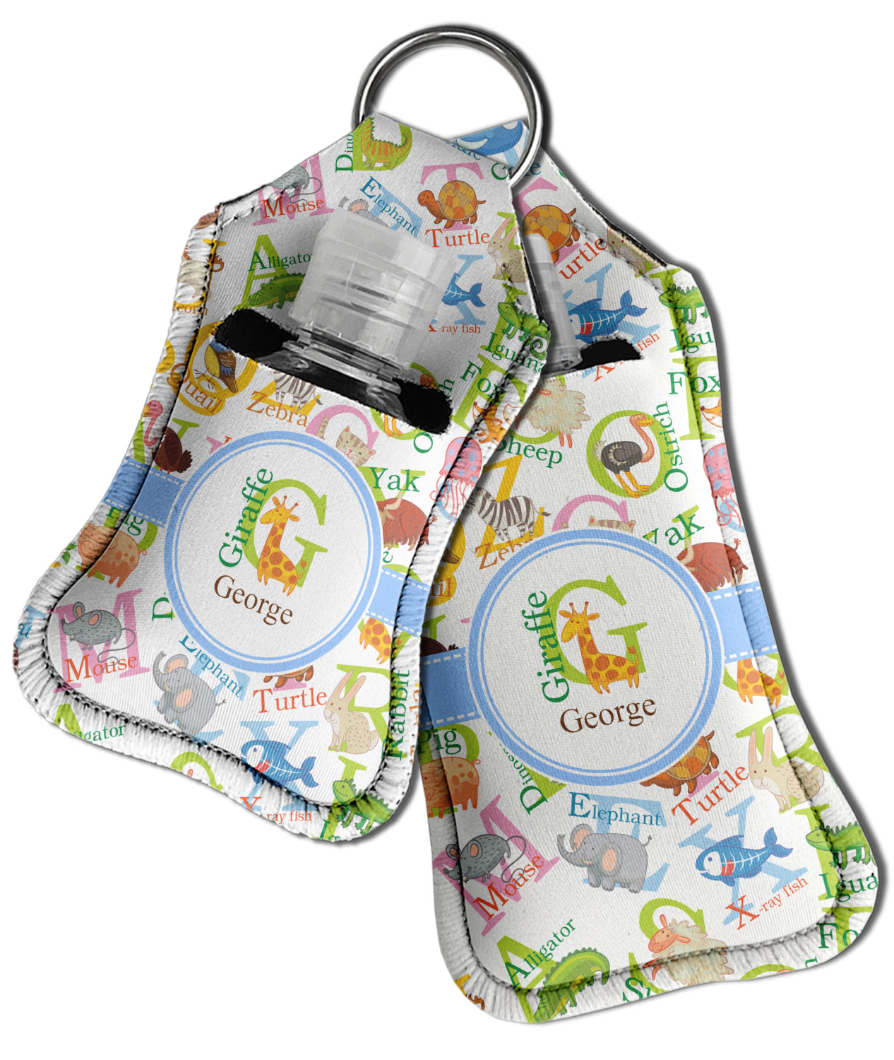 Each hand sanitizer holder comes with its own empty travel-sized, refillable hand sanitizer sure to fit snug in your customized sanitizer case! Our hand sanitizer cases are a durable, yet soft neoprene material sure to last any daily activities or travel agenda. Customize and personalize a hand sanitizer bottle holder with one of our two sizes - small (4.25" x 2.25") or large (5.5" x 2.5"). Each travel sanitizer holder comes with a keyring for attachment on bags, keys, or more!