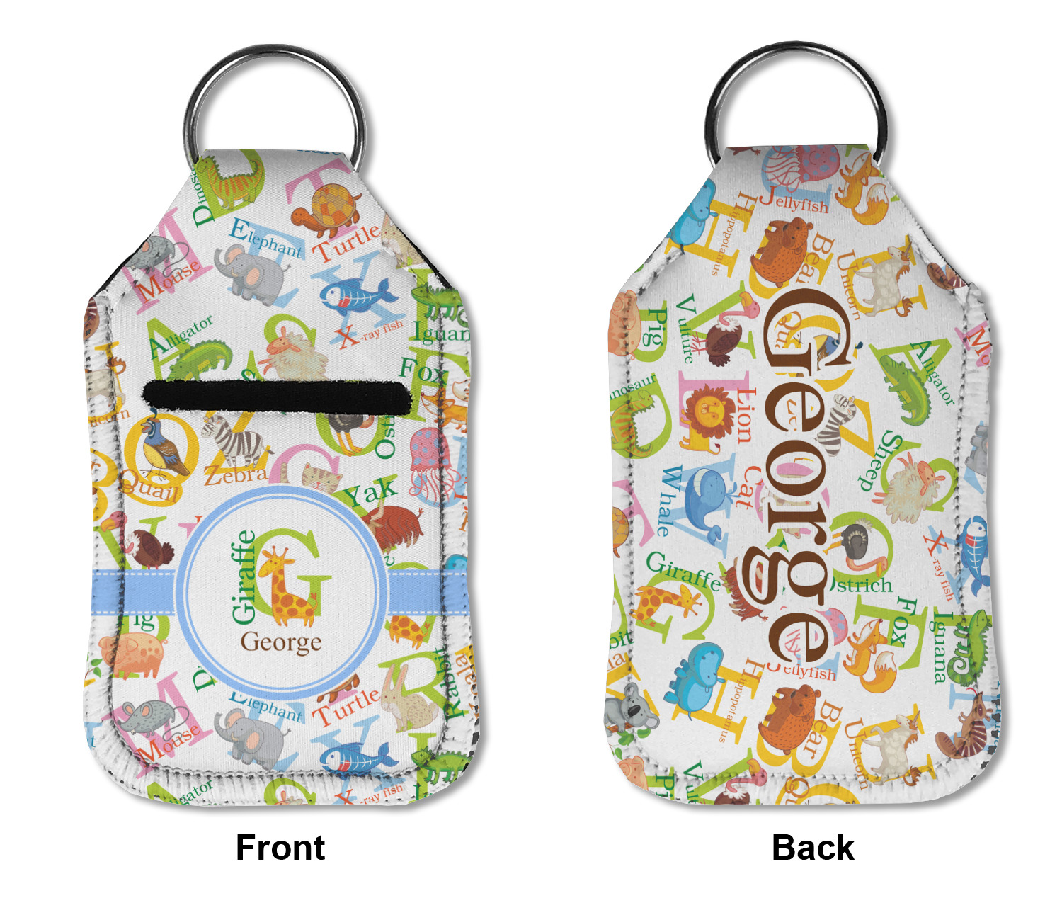 Each hand sanitizer holder comes with its own empty travel-sized, refillable hand sanitizer sure to fit snug in your customized sanitizer case! Our hand sanitizer cases are a durable, yet soft neoprene material sure to last any daily activities or travel agenda. Customize and personalize a hand sanitizer bottle holder with one of our two sizes - small (4.25" x 2.25") or large (5.5" x 2.5"). Each travel sanitizer holder comes with a keyring for attachment on bags, keys, or more!