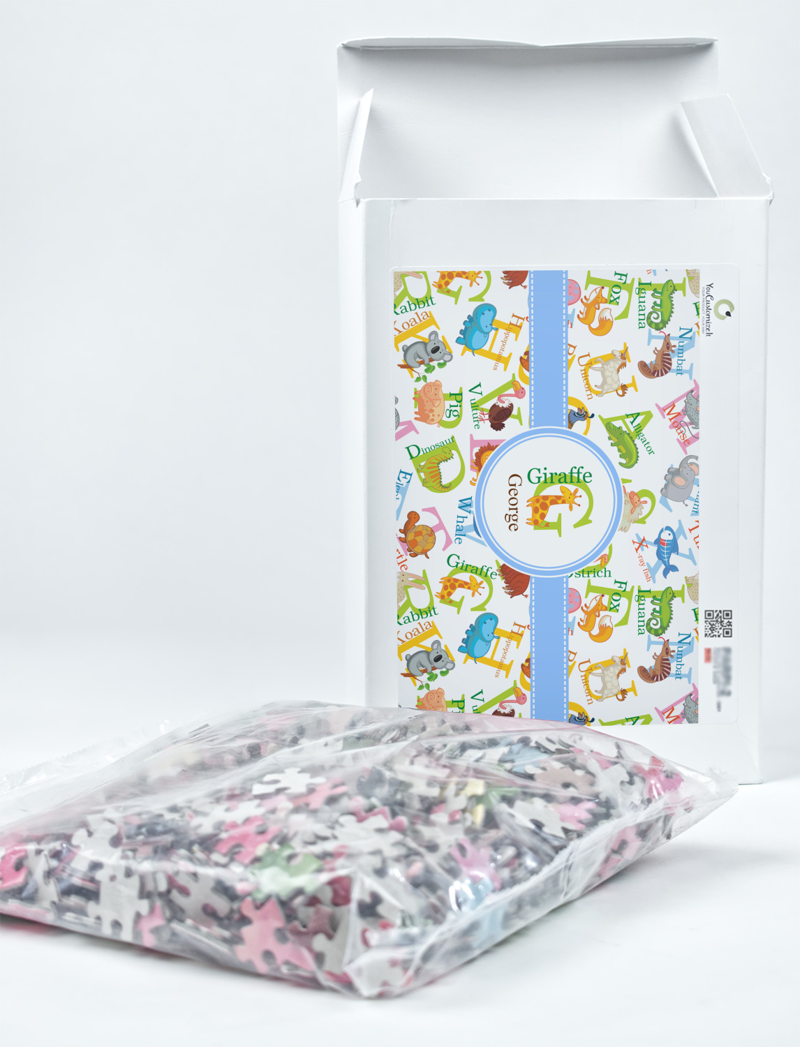 You can also upload your logo or art that you or your kids drew. To create more challenging jigsaw puzzles, you can create a pattern from with your logo or artwork. You can also add other elements such as text or personalization.