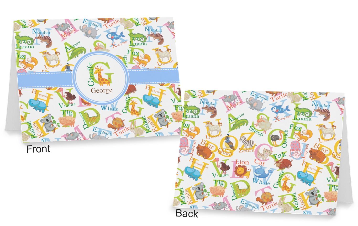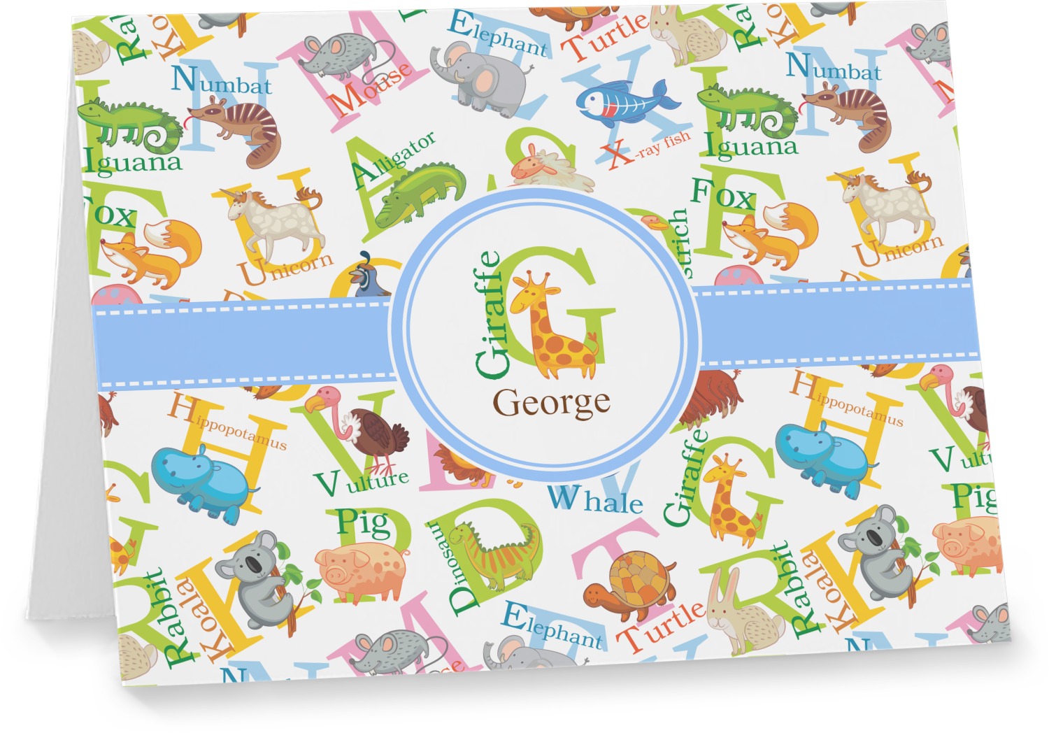 This animal alphabet design is perfect for babies and toddlers. The background consists of animals associated with all 26 letters of the alphabet. A for Alligator, B for Bear, C for Cat - all the way to W for Whale, X for X Ray Fish and Z for Zebra. We chose a white background for our design - however the background is re-colorable and also looks great with any pastel color.