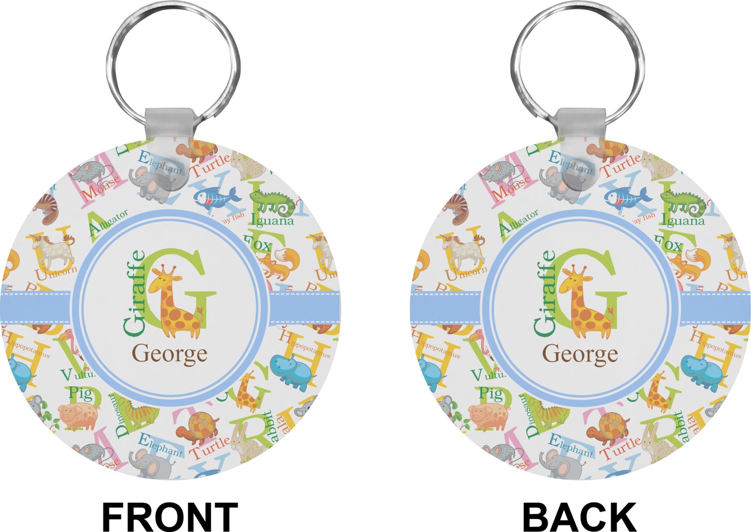 Our personalized keychains attach to the included metal, split key ring with a plastic, removable snap. Since a metal ring is included with your purchase, you have the liberty to keep your keys together on the ring, with or without your unique keychain. We offer this keychain in three different shapes: circle, heart, or diamond. We print your personalized design(s) on both sides of the key chain, and the surface has a glossy, reflective finish that only emphasizes your design. Each keychain is approximately 2.25 by 2.25 inches.