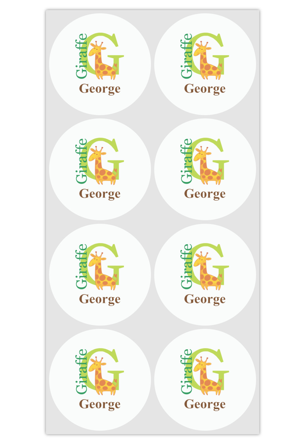 We chose baby blue ribbon with stitching and a round label. For personalization we chose the G for Giraffe and George! With us, you always have a choice of many different colors, label and ribbon styles. For personalization, you can chose the animal alphabet associated with the initial (see image) or you can just choose the animal or you can select a completely different style such as a monogram or a name & initial. You can try our the various combinations in our customization system to see which combination you like the best!