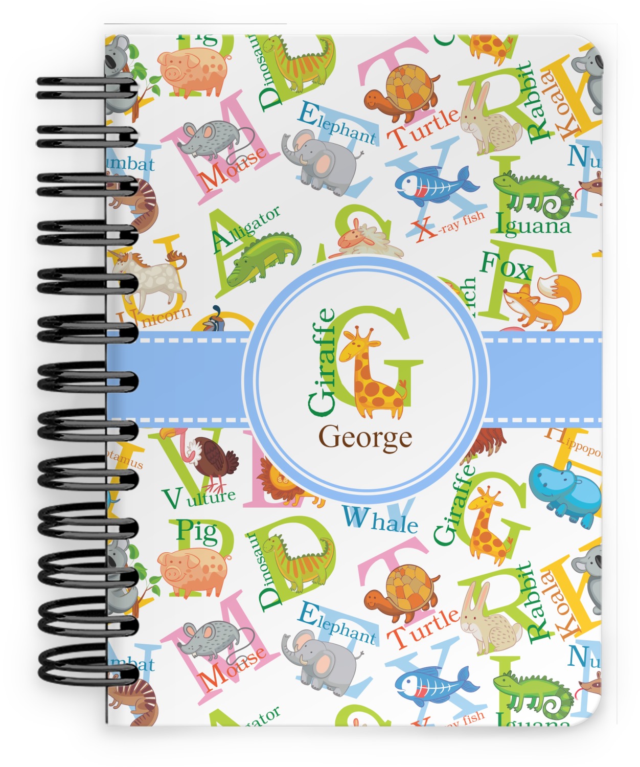 This spiral notebook includes 75 sheets of thick, ruled paper. The front and back of this custom notebook is made of a robust, laminate, plastic covering. We print your personalization on these two panels, underneath a glossy finish, which emphasizes the colors of your design. The two panels and the sheets of paper are held together by a sturdy, black coil. The paper within your bound notebook is perforated for easy, clean tearing.