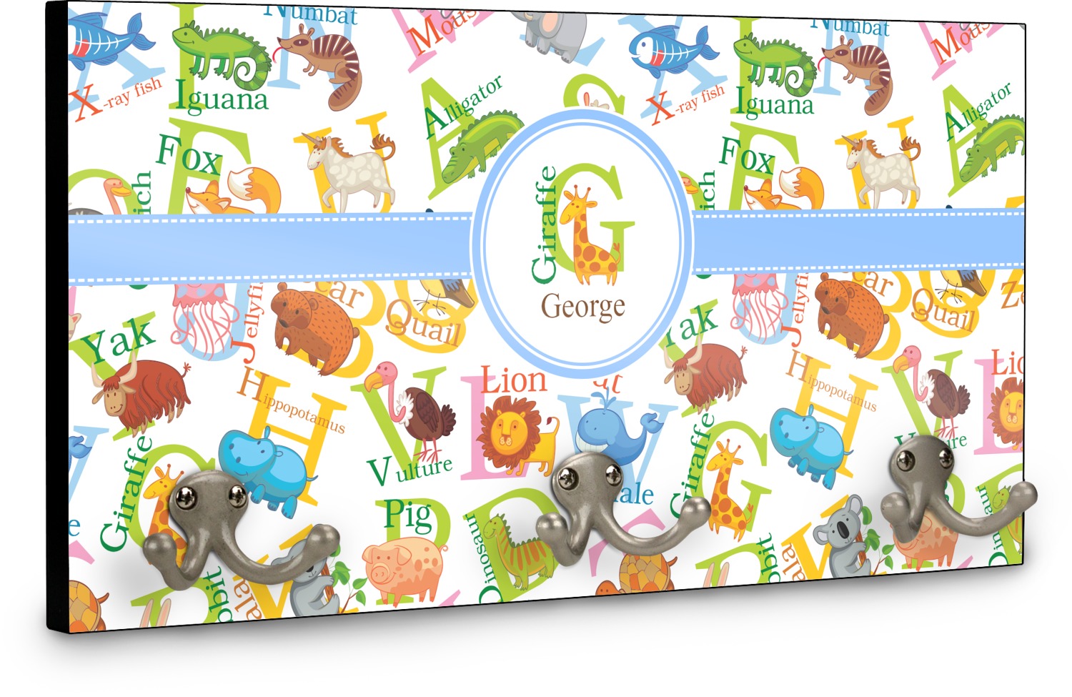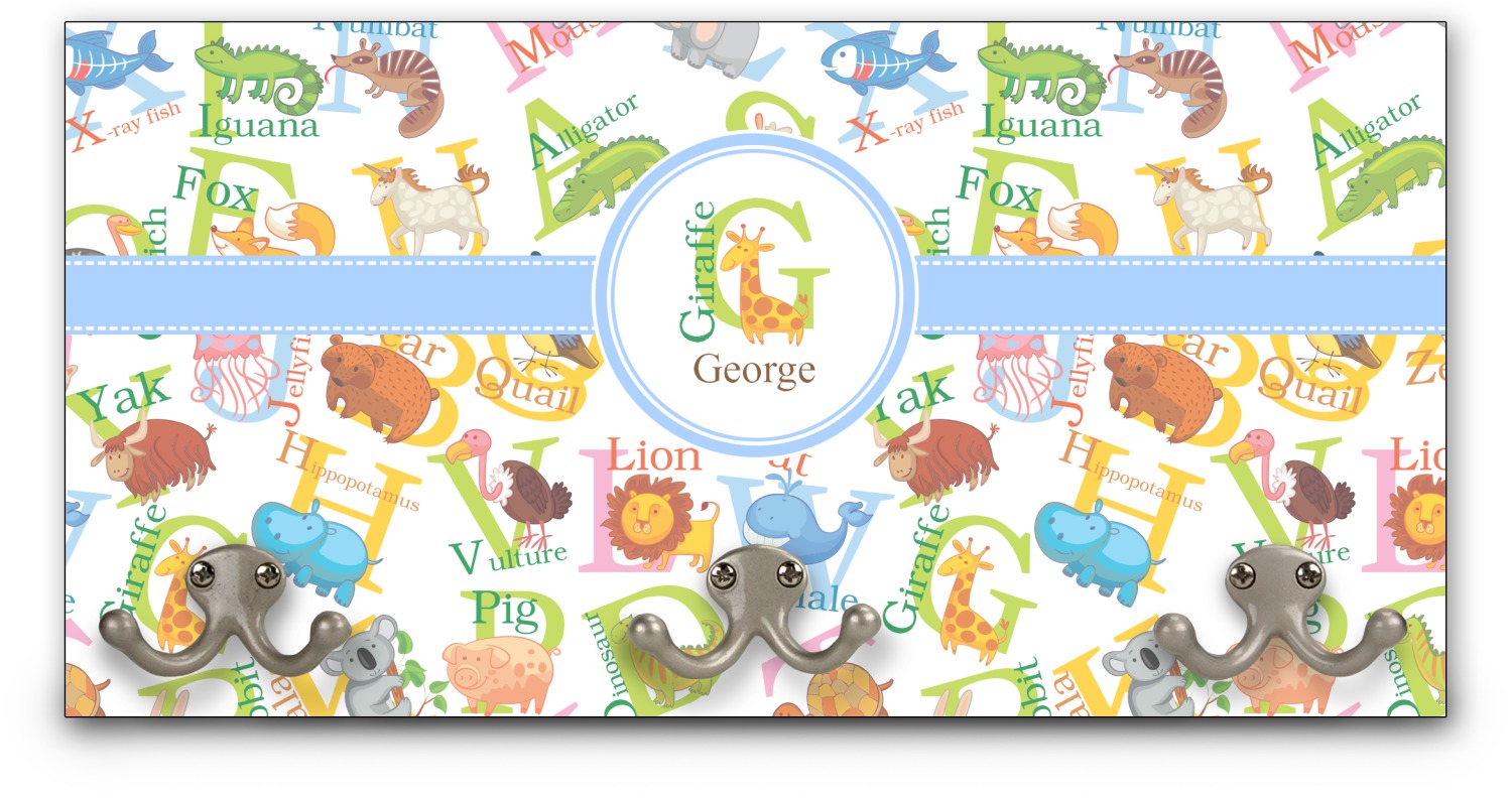This coat rack is the perfect way to add some personality to your wall or entryway. The board is made of a strong maple that is approximately 16" x 8". The three 2-prong hooks are a sturdy metal that have three screws attaching them to the board. Your design is printed right onto the front of the board while the back and sides are a simple black.