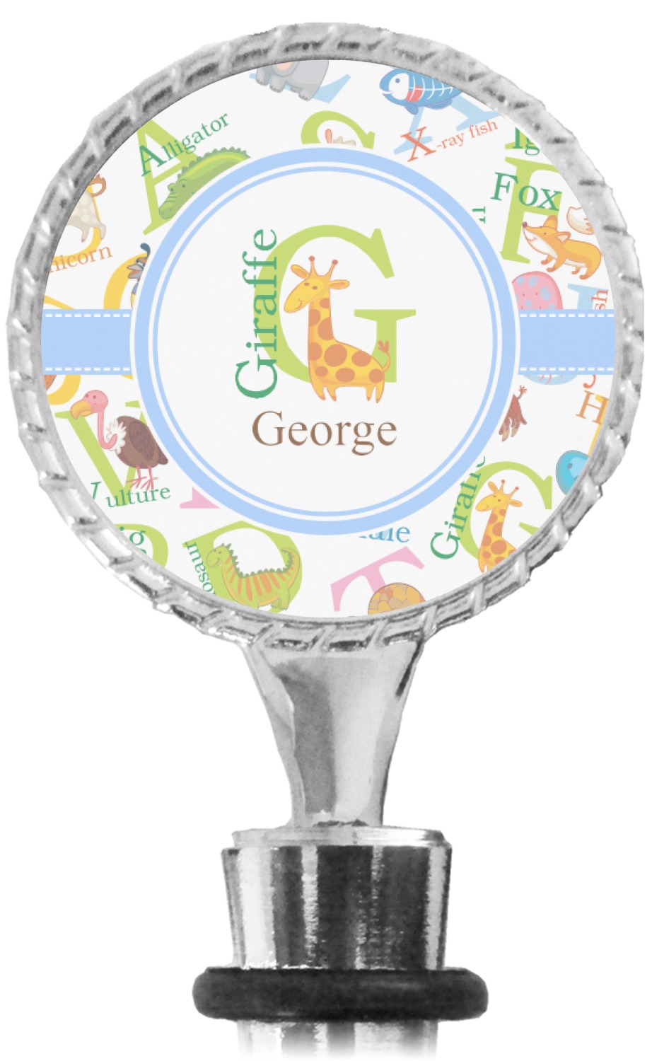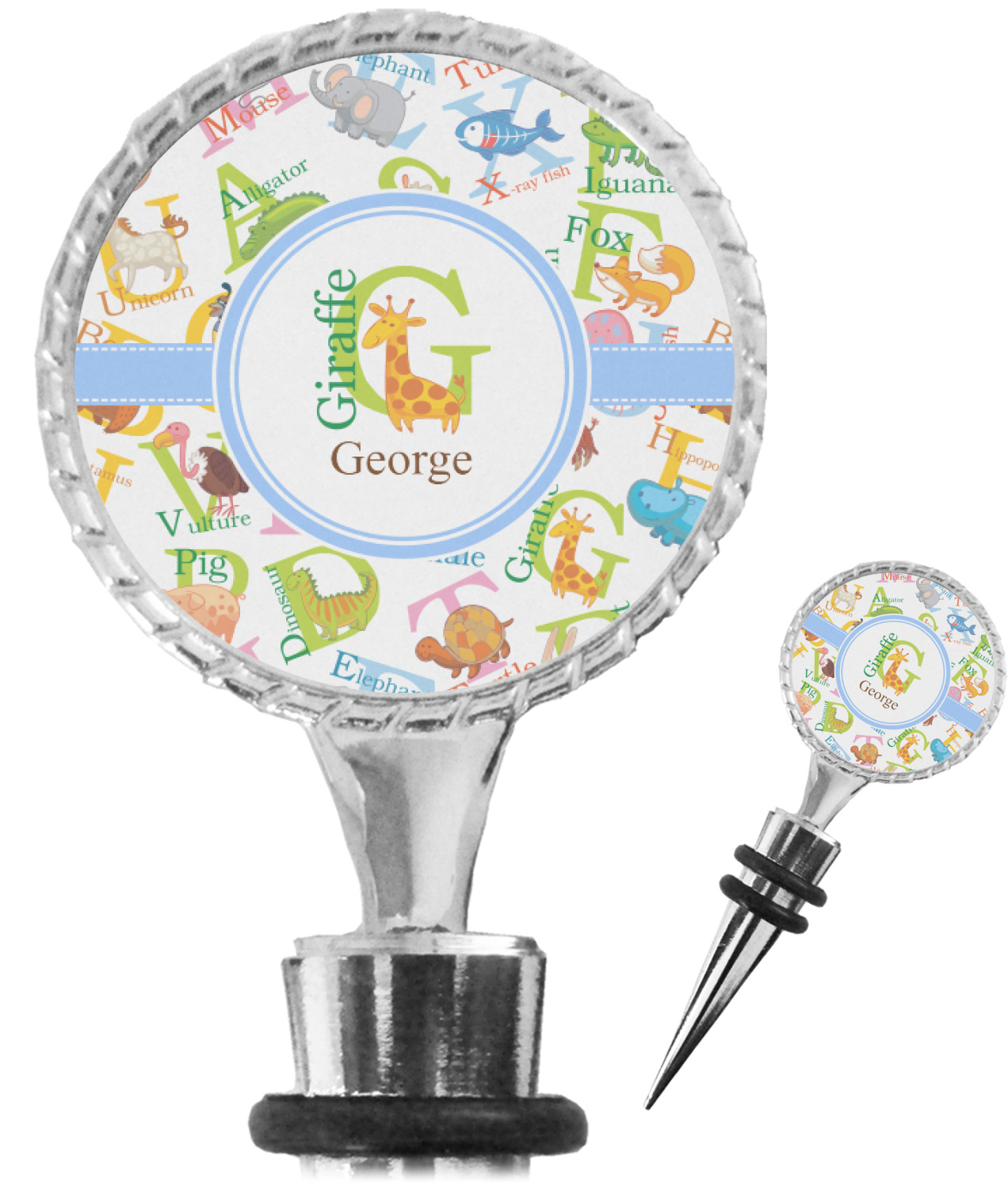 The top part of your bottle stopper is comprised of a zinc ring that displays your customization(s) in its middle, on both sides. The ring is heavy duty, with a bright chrome finish. The body of the wine stoppers have two silicone rings to provide an airtight seal. These wine bottle stoppers measure at 1.625" L x 0.8125" W x 4.625" H; your custom wine stopper is meant to fit into most standard-sized wine bottles.