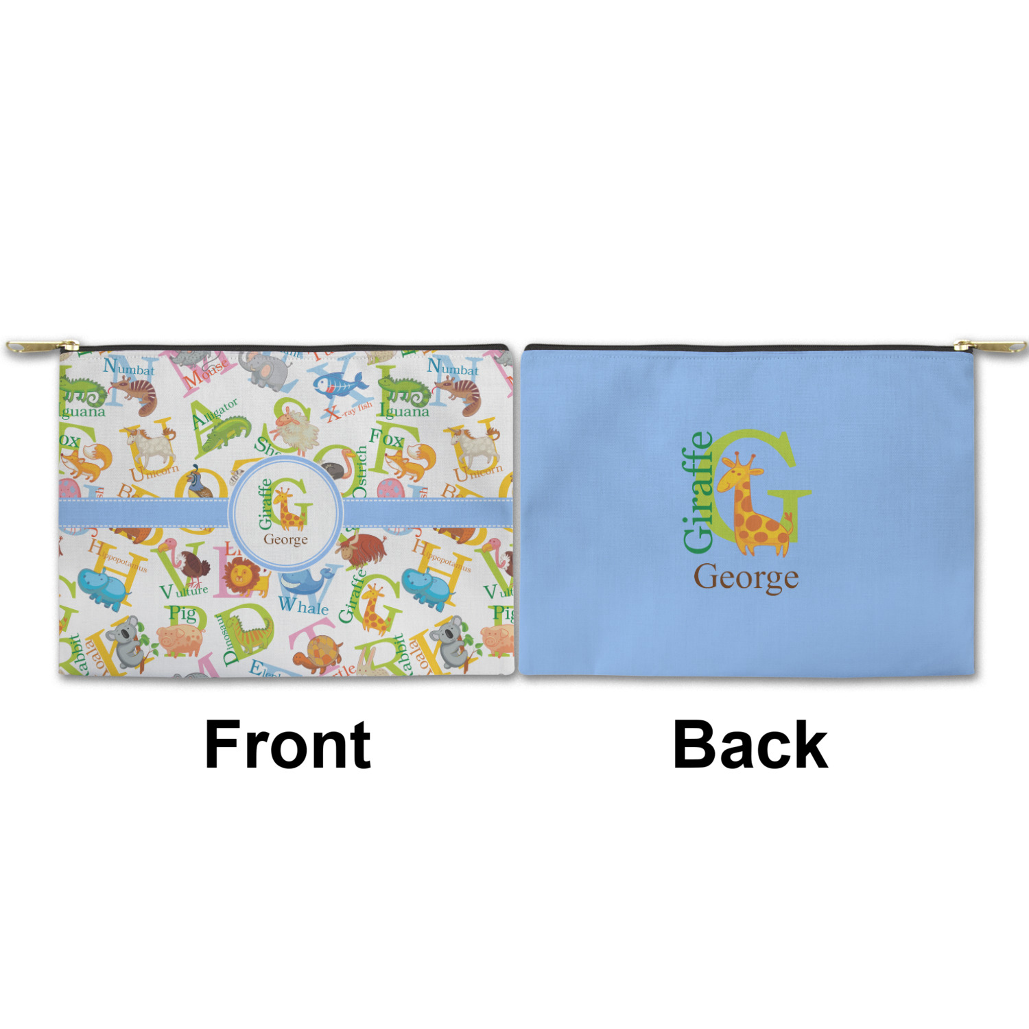 You can design both the front and the back of the pouch - same design, two complementary designs or two totally different designs - the choice is yours! We offer many different personalization styles i.e. name, name & initial, monograms - so the choice to personalize is also yours.