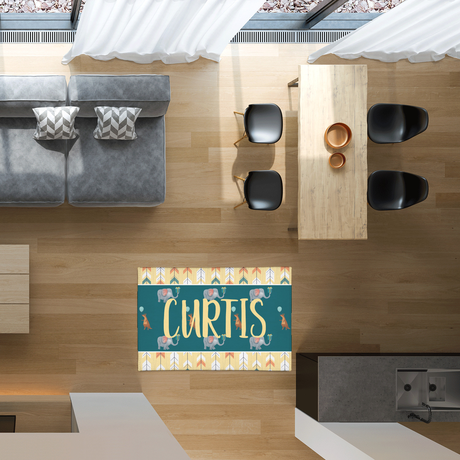 Area rugs add color and warmth to any room in the house, so create a custom area rug to suit your personal style and match it to the colors in your home. Have it personalized with a monogram, initial, name or a combination of these - the choice is yours.