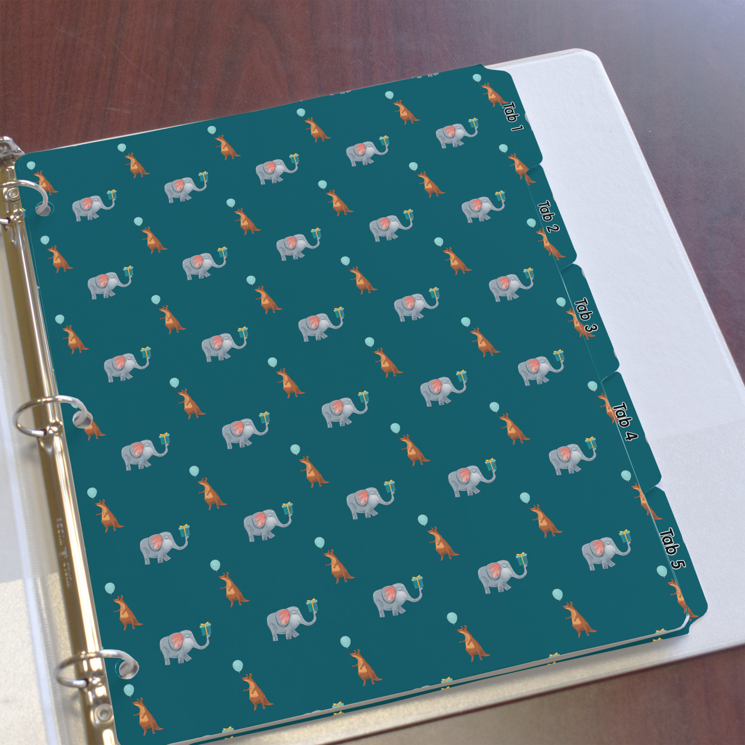 Whether you use binders at school or at work, we have designs to suit all of them. Available in 5 or 6 tab sets, you are sure to find a set to suit your needs. The back of each one is white and can be used to take notes, write vital information on, etc.