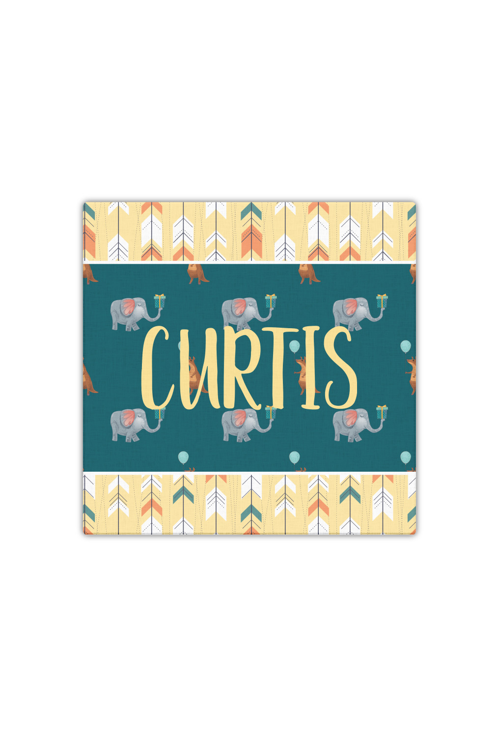 This design has an adorable pattern with a kangaroo and elephant on a dark teal background. The best part of this design is that you can easily swap out the kangaroo or elephant for your the birthday boy / girl's favorite animal! Each animal is holding some sort of party item like presents and balloons.
