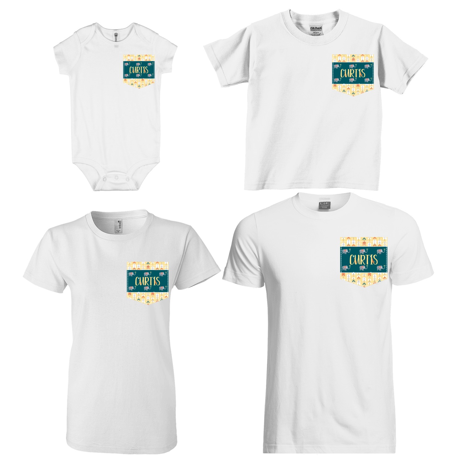 The faux pockets are available in 4 different sizes - for baby, kids, youth/women & men; the whole family can have the same pocket design, but sized just for them! The pockets are printed using our direct-to-film technology to the exact shape & size. We have faux stitching around the pocket, with double stitching on the top of the pocket to give it the authentic pocket look!