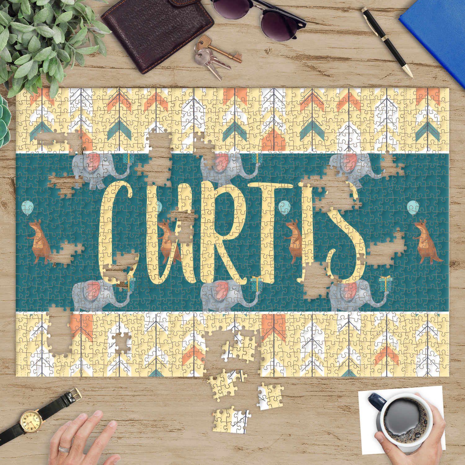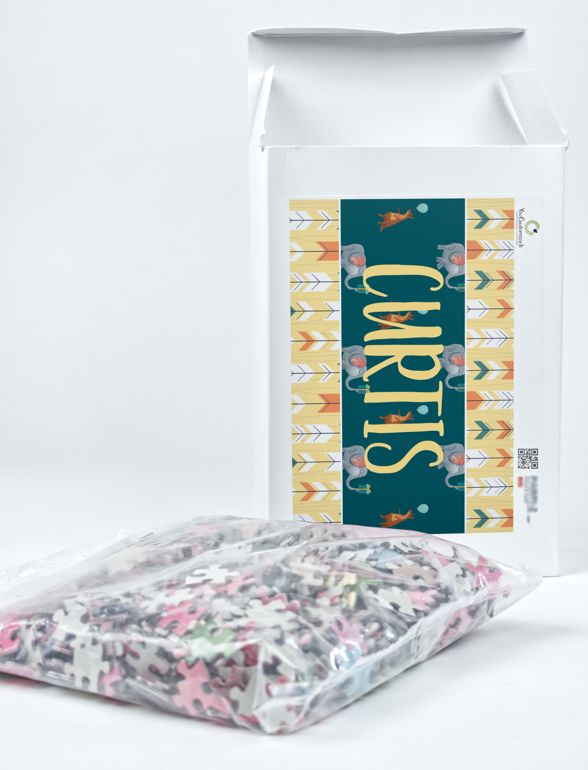 You can also upload your logo or art that you or your kids drew. To create more challenging jigsaw puzzles, you can create a pattern from with your logo or artwork. You can also add other elements such as text or personalization.