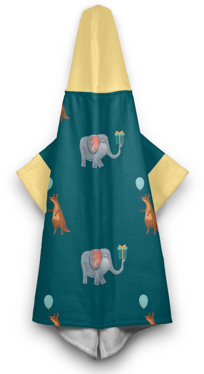 This design has an adorable pattern with a kangaroo and elephant on a dark teal background. The best part of this design is that you can easily swap out the kangaroo or elephant for your the birthday boy / girl's favorite animal! Each animal is holding some sort of party item like presents and balloons.