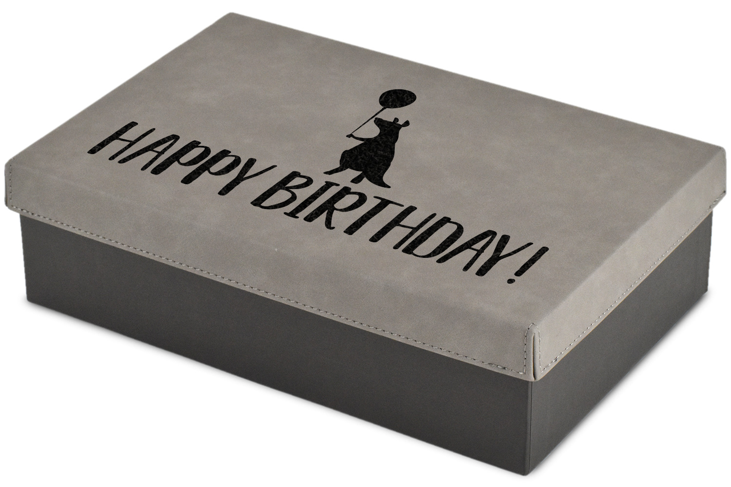 These gift boxes are available in 3 different sizes to accommodate various sized gifts. Available in gray as a neutral color for any occasion as well as to showcase your design boldly. Engraved with a laser this high quality paper board and faux leather gift box is unique and makes any gift stand out.