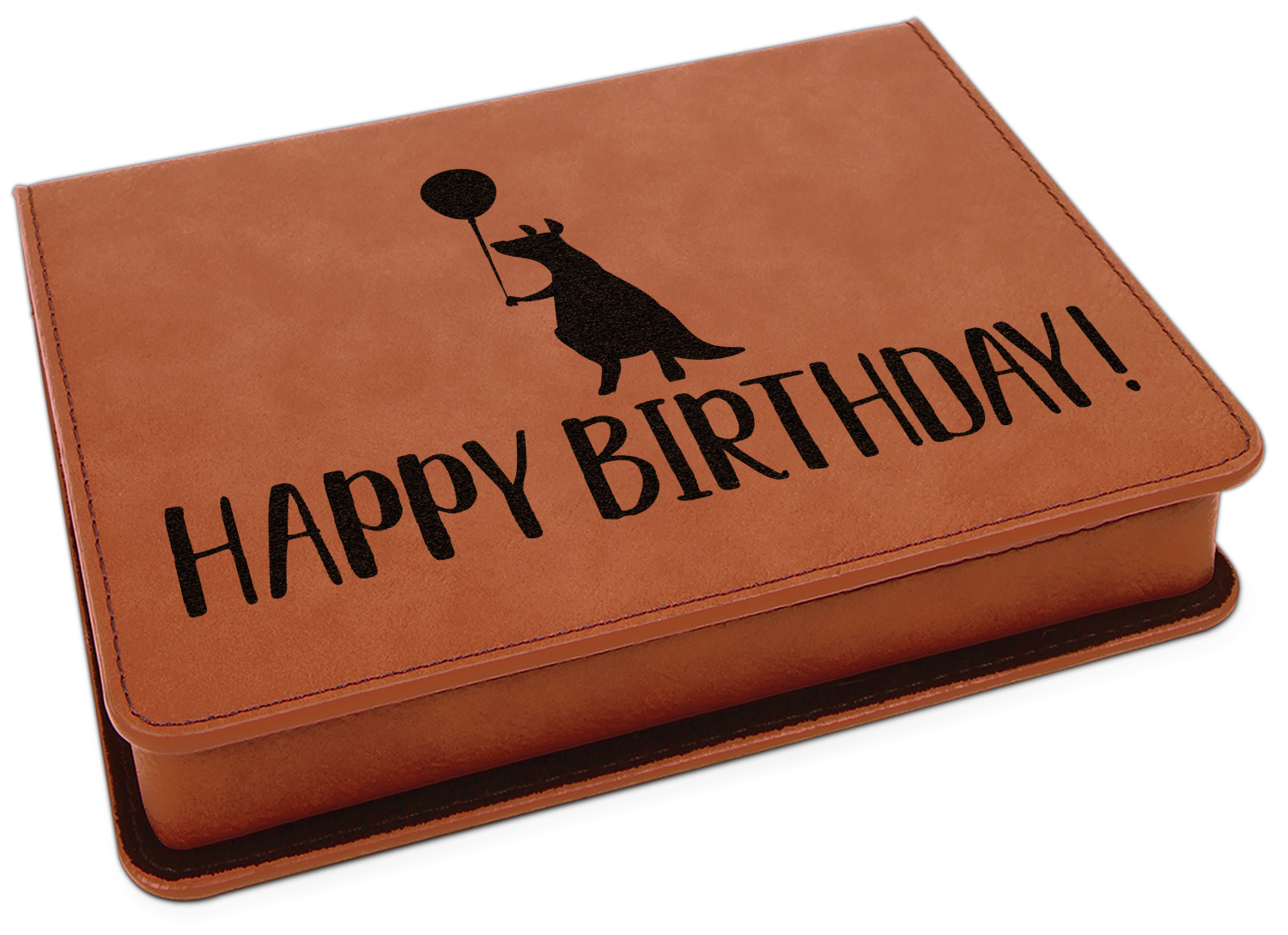 This set includes a wine stopper, pourer, drip ring, and a corkscrew! The exterior of the box is a gorgeous, cognac-brown leatherette, while the interior is covered in a black, velvety material. Four foam indentations, unique to the shape of the wine tool, are found at the bottom half of the box's interior. The tools fit snugly into each of their designated spots, and the foam material helps to protect the integrity of your tools. Each of the wine gadgets features a bamboo accent, with the location and style depending on the tool itself. We laser engrave your personalized design onto the lid of the box, which easily flips open and is secured closed by a small magnet. The wine accessories box measures at 7 by 5.5 inches in total.