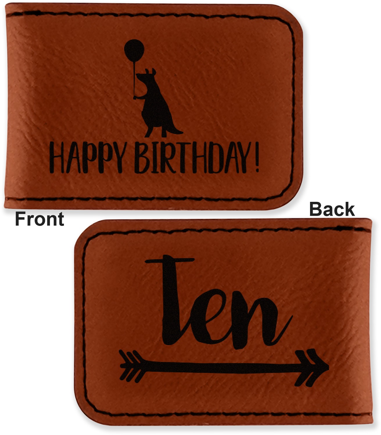 Your money clip will be laser engraved so that the design you choose will come out black. Find a fun graphic, monogram, or font to use to personalize your money clip either on just the front or the front and the back.