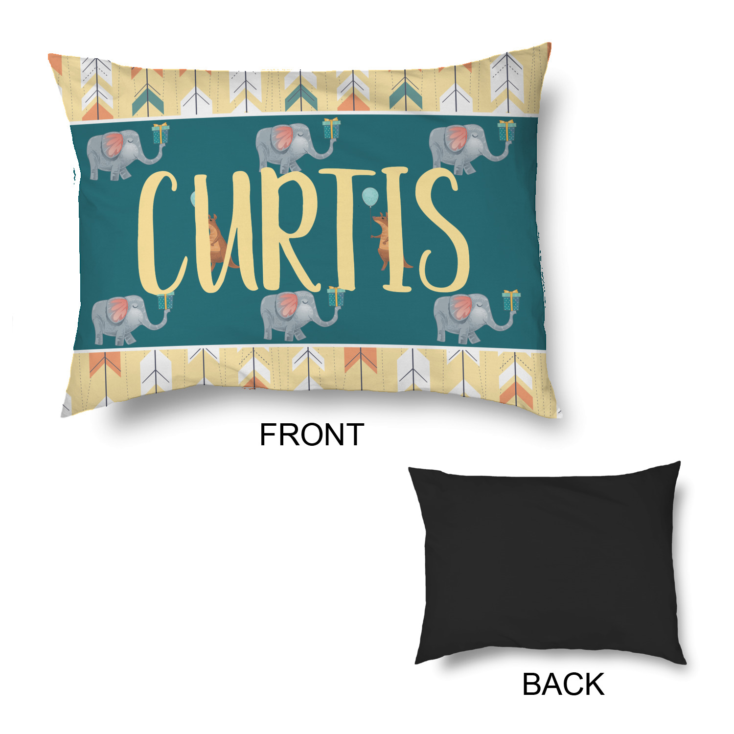 This design has an adorable pattern with a kangaroo and elephant on a dark teal background. The best part of this design is that you can easily swap out the kangaroo or elephant for your the birthday boy / girl's favorite animal! Each animal is holding some sort of party item like presents and balloons.