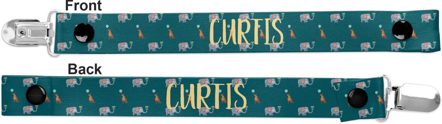 This personalized pacifier clip is the ideal size and measures at approximately 7.5 inches in length, when either end is snapped closed. On one end, you'll find a snap button. This button of your baby's pacifier holder is what can be attached to their pacifier to hold is securely in place. Simply open the snap, slip it through the pacifier opening, and snap it back into place. On the opposite end of this baby pacifier holder, you'll find a metal clip that can secure to a baby's collar or sleeve. This clip ensures that the strap stays in place, and that your baby's pacifier is always on hand.
