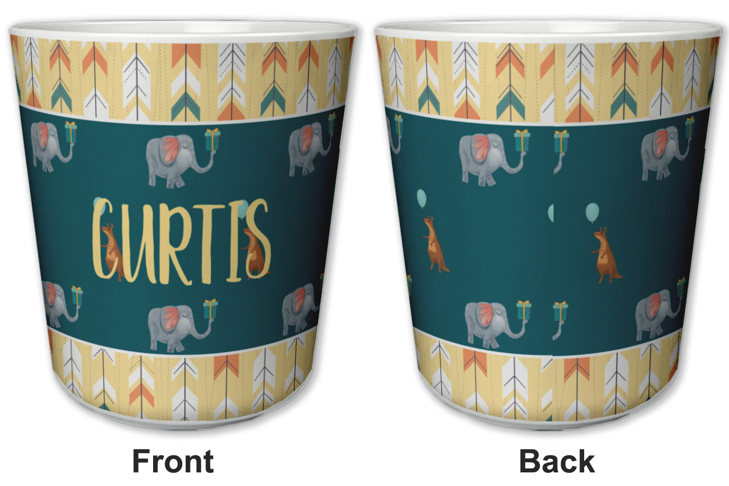 Made from a durable plastic, these tumbler cups are strong enough to withstand daily use and are perfect for young children. Each of these personalized plastic cups holds 6 ounces and measure at approximately 3" x 3" x 3.25". Place them in the bathroom as a rinsing cup, or give them to your kids during mealtimes. These 6 oz. plastic cups are BPA free, microwave and dishwasher safe, for your convenience. Your personalized design is displayed across the entire outside of this cup, while the inside is white in color to make your customization really stand out.