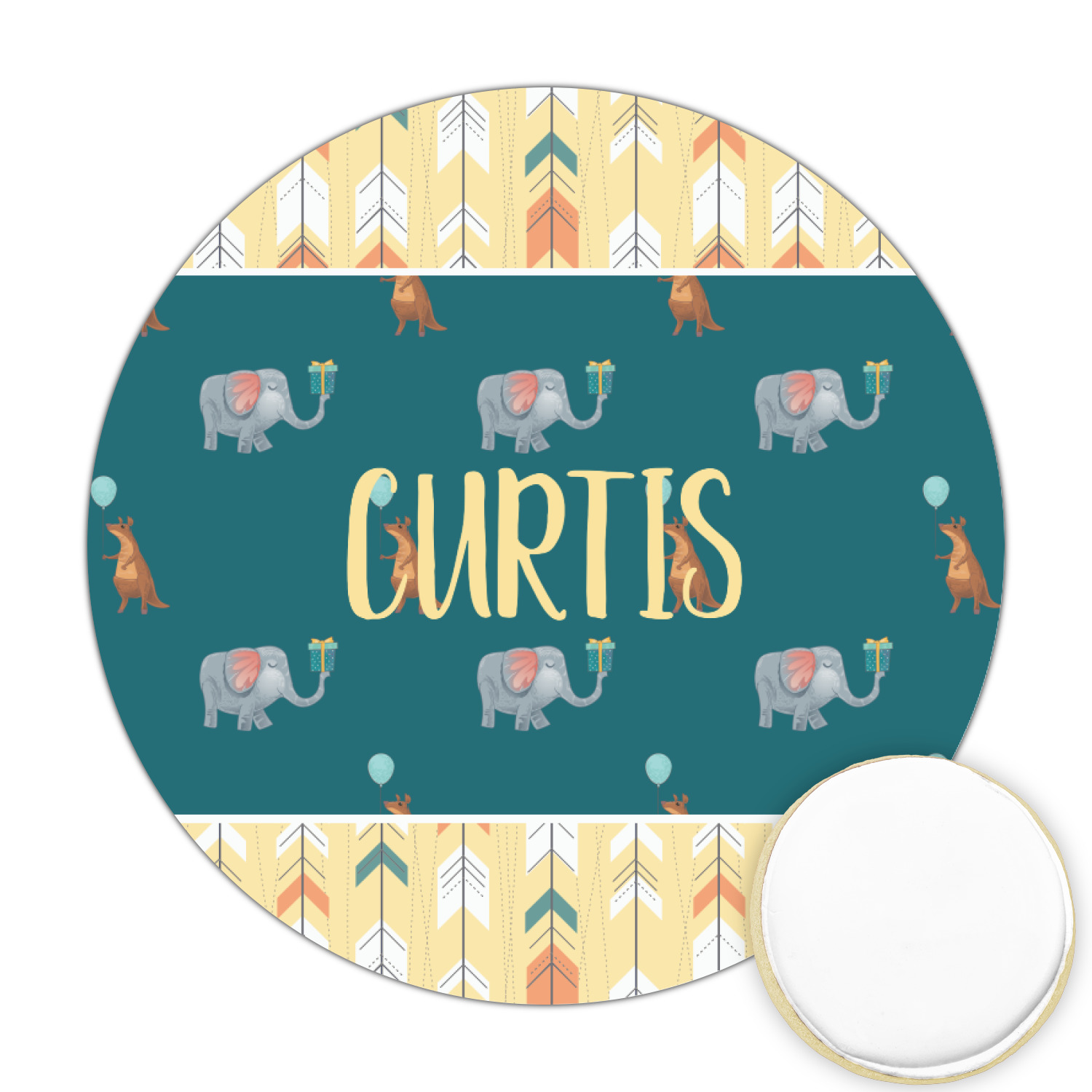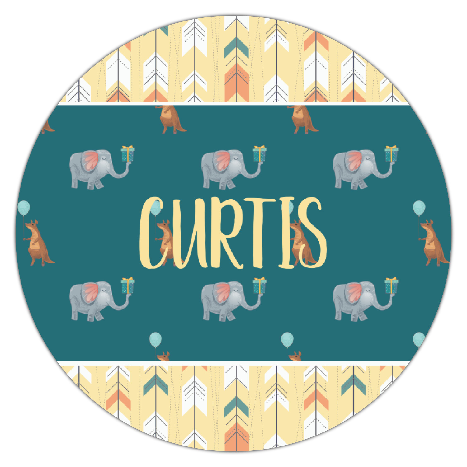 This design has an adorable pattern with a kangaroo and elephant on a dark teal background. The best part of this design is that you can easily swap out the kangaroo or elephant for your the birthday boy / girl's favorite animal! Each animal is holding some sort of party item like presents and balloons.