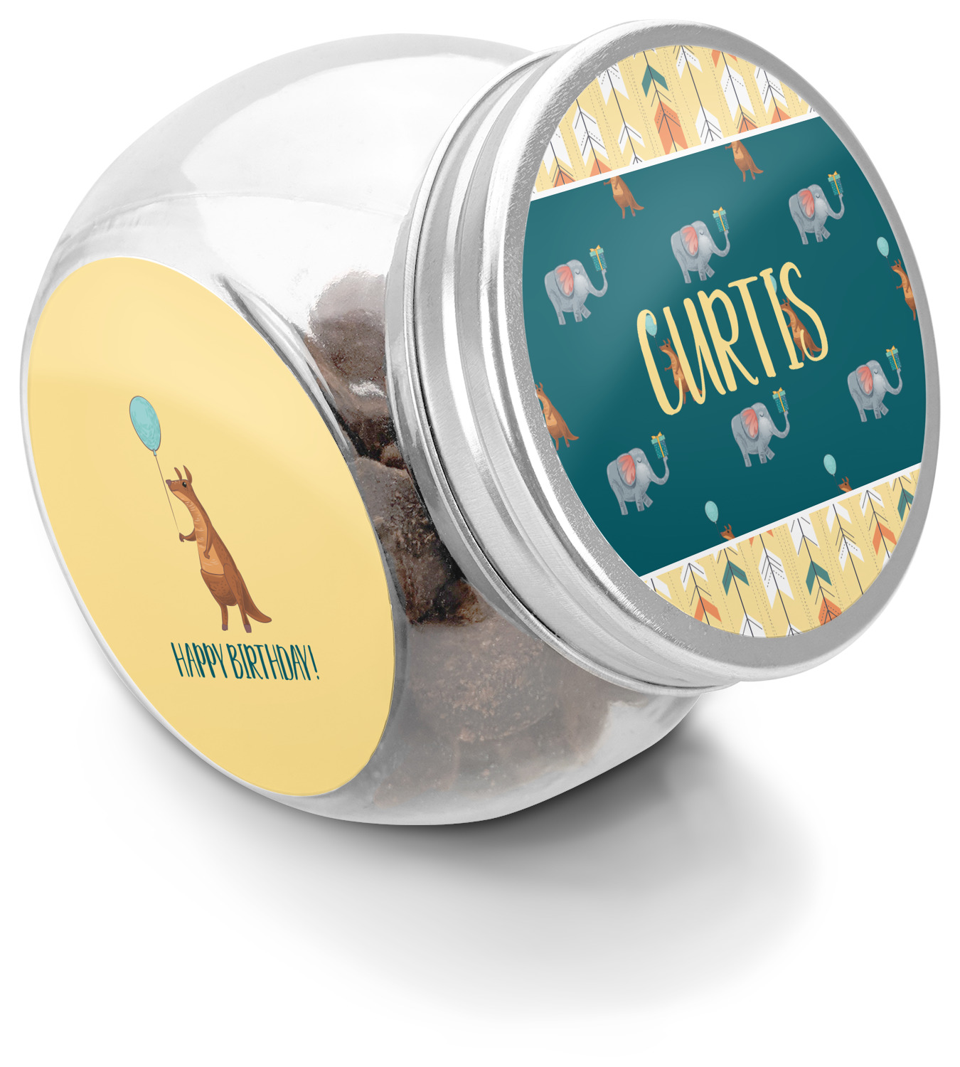 Pleased with your customized design? Perhaps purchase a matching dog food bowl, dog food mat, or even another, larger dog treat jar! Check out our Pet Accessories Department for even more gift options for your puppy.