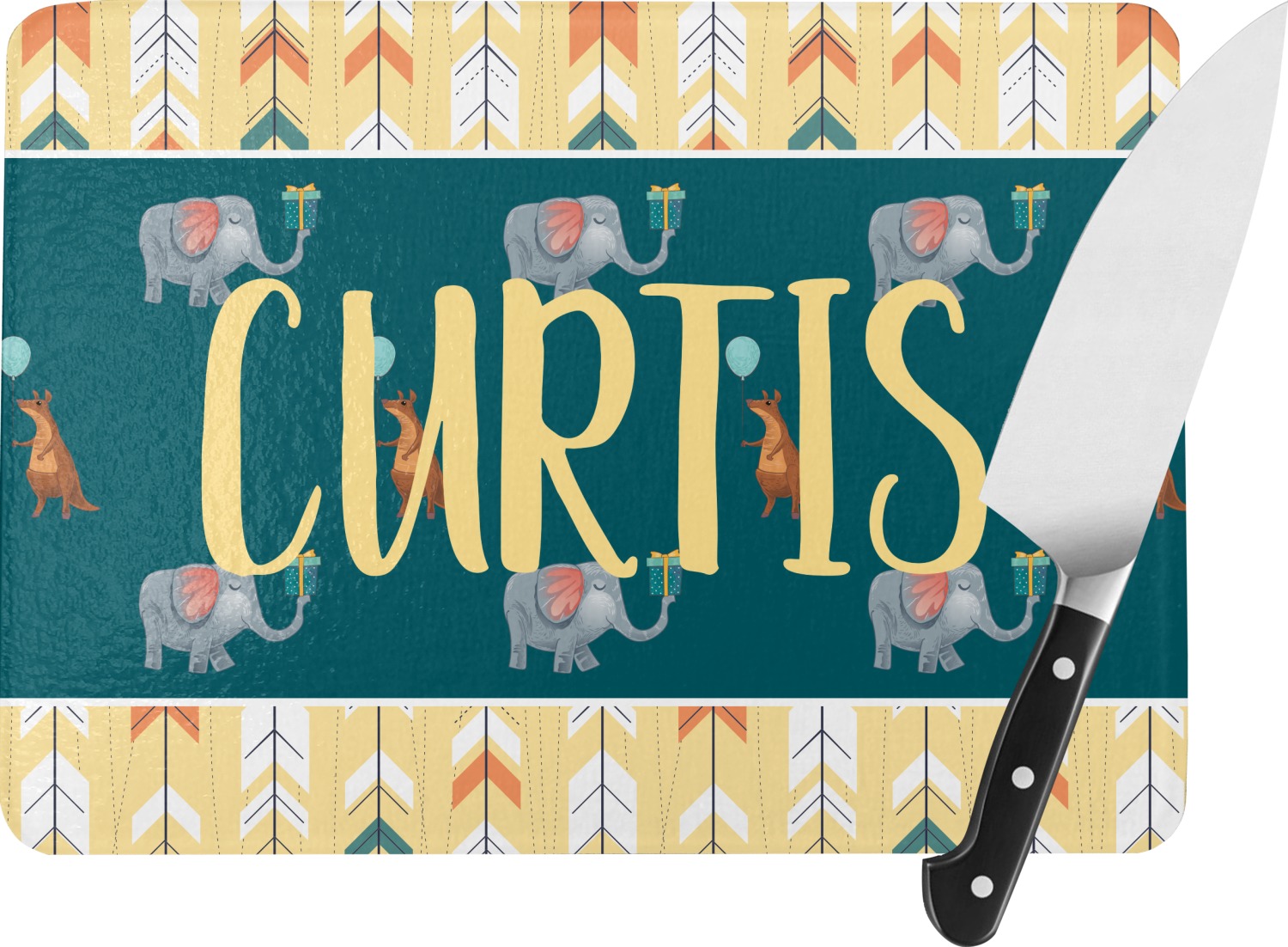 The design is split up into three sections with the arrow pattern on the top and bottom, and the animal pattern in the middle. The middle section is where you personalization goes! You can use their name or simply write "happy birthday!"