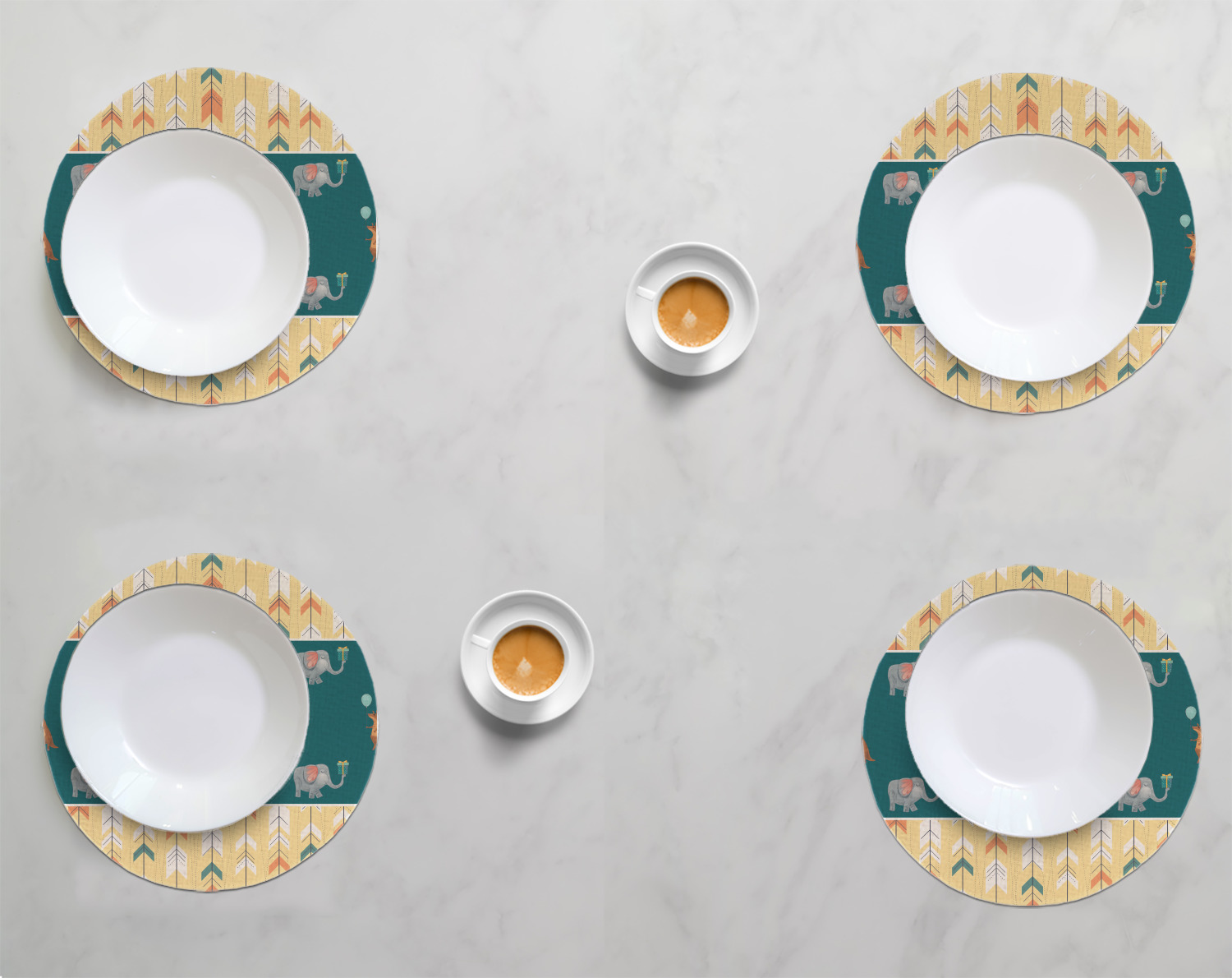 The secondary pattern is a fun light yellow with arrows of white, teal, and orange. This is a fun contrast with the animals.