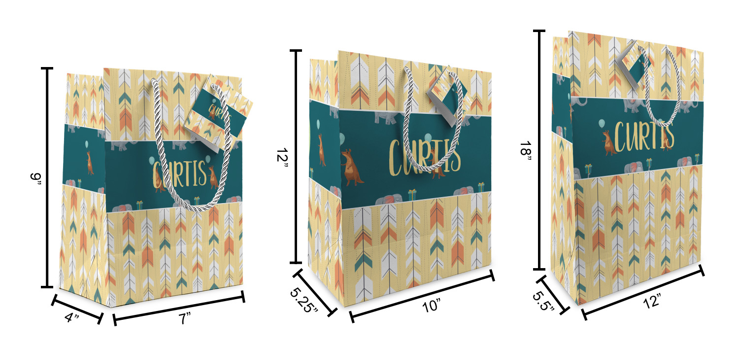 These custom gift bags come in your choice of 3 sizes. Their dimensions are below: