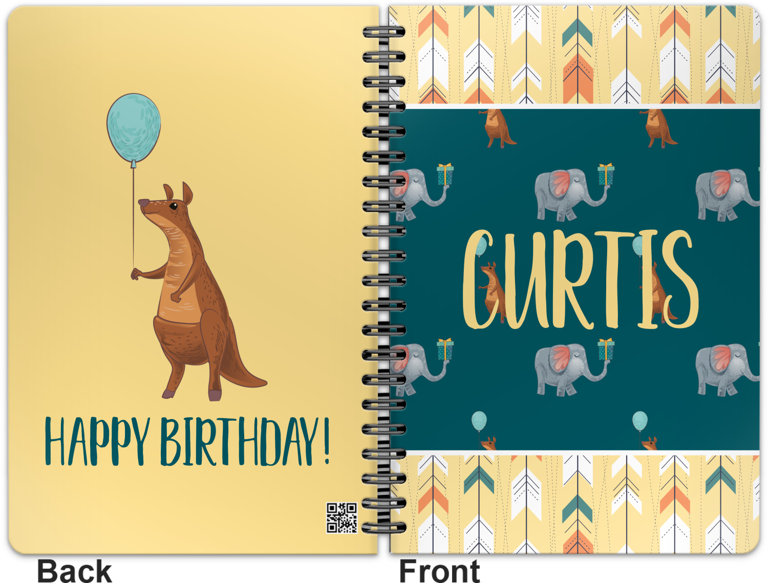 This design has an adorable pattern with a kangaroo and elephant on a dark teal background. The best part of this design is that you can easily swap out the kangaroo or elephant for your the birthday boy / girl's favorite animal! Each animal is holding some sort of party item like presents and balloons.