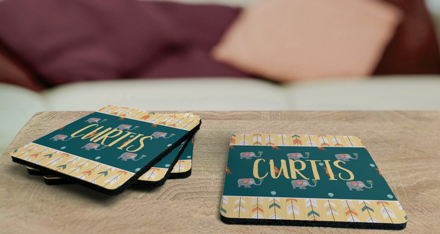 Replace your boring, run-of-the-mill coasters with a set of 4 personalized coasters! When personalized, these coasters will protect your beloved surfaces while adding to your home's decor! Thanks to your coasters bright colors and unique design, your guests will be eager to use them!