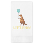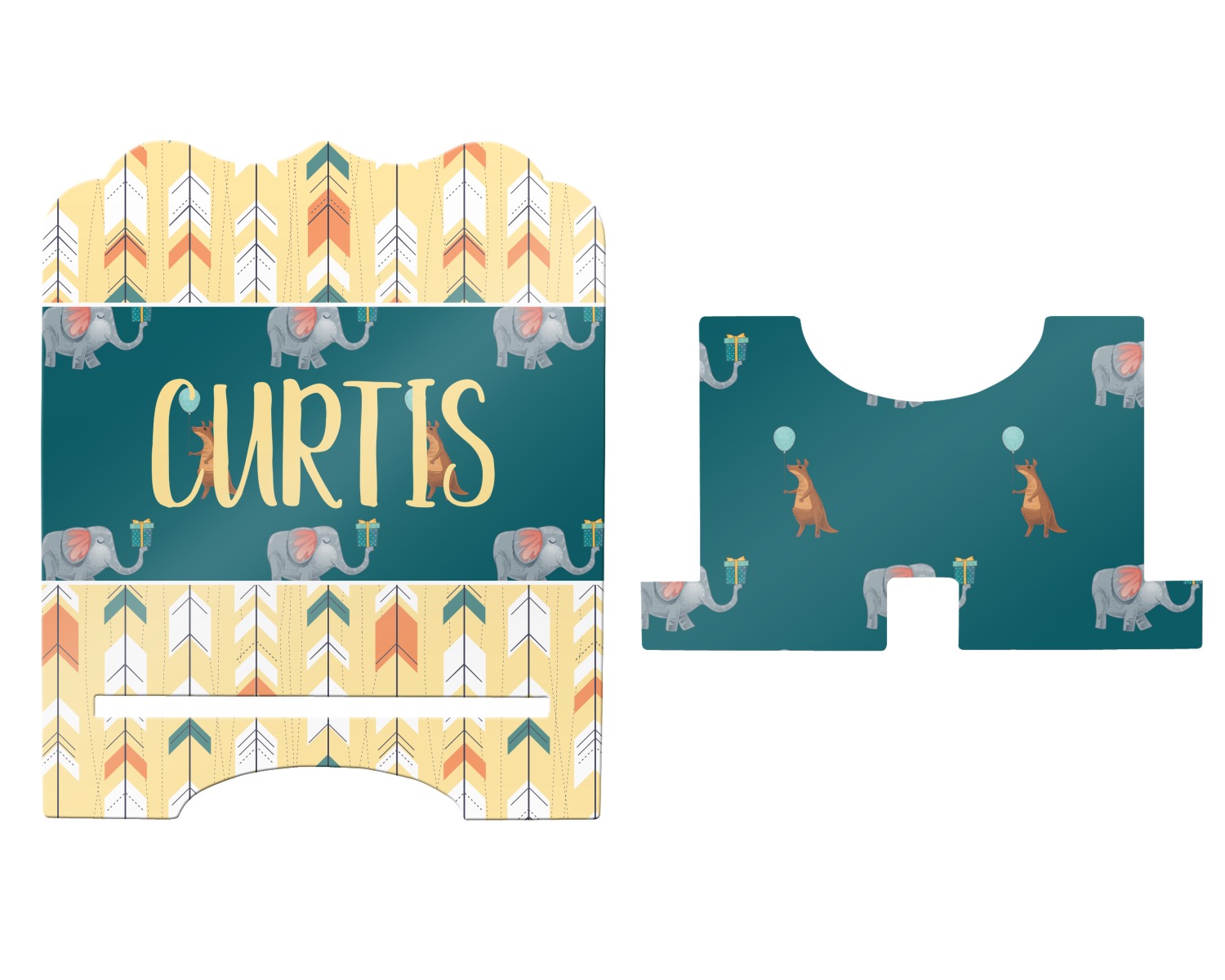 This design has an adorable pattern with a kangaroo and elephant on a dark teal background. The best part of this design is that you can easily swap out the kangaroo or elephant for your the birthday boy / girl's favorite animal! Each animal is holding some sort of party item like presents and balloons.