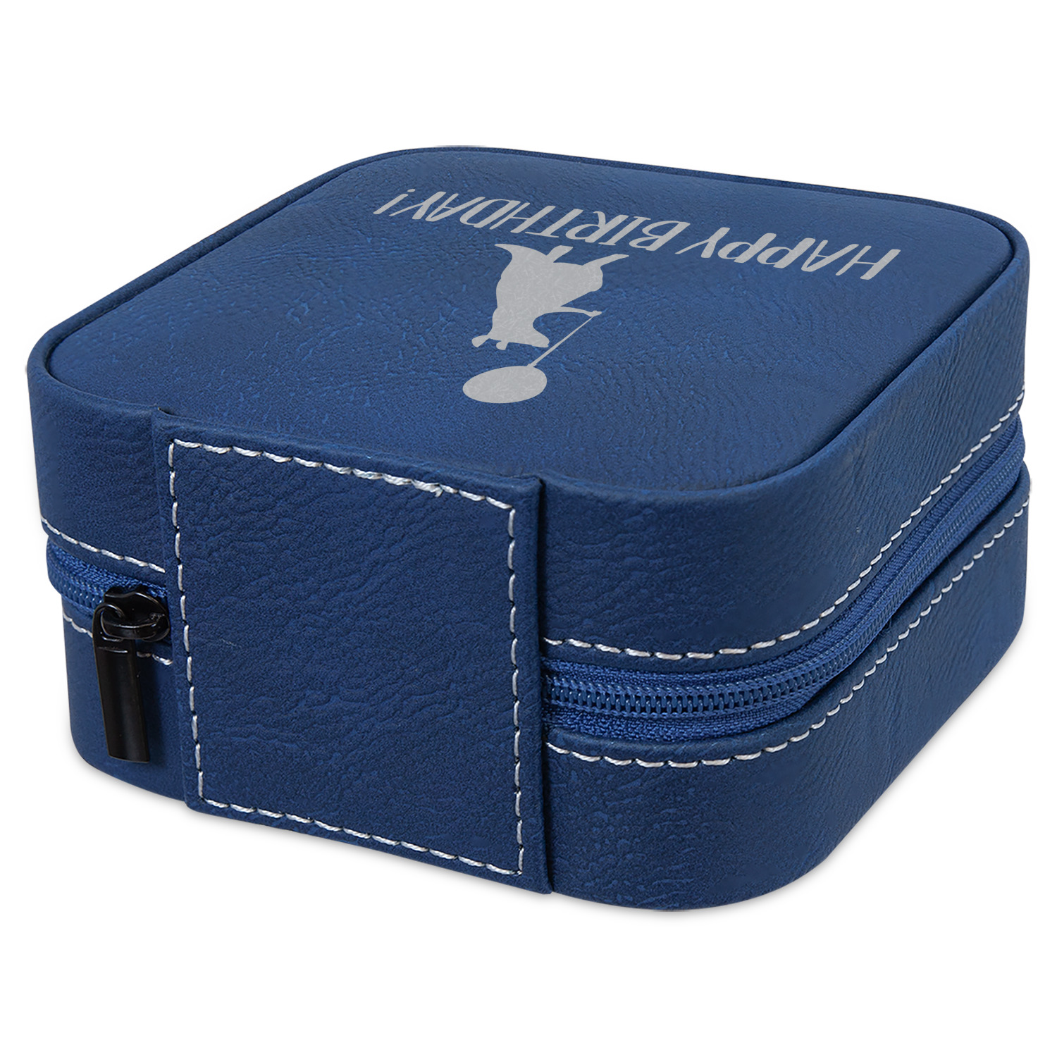 This square zippered travel jewelry box is made from leatherette and is available in four colors - classic cognac / rawhide, a beautiful teal. navy blue or pink. The tan colored soft velvet inside has compartments and hooks for all your jewelry - rings, chains, earrings, bangles etc.