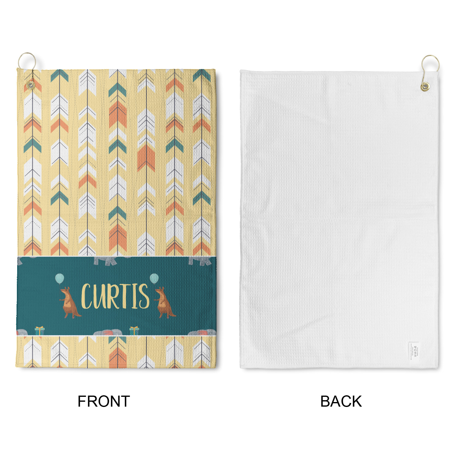 Personalize your design for your towel in our design studio then we will custom print and make it for you. The heavy duty brass grommet and hook are perfect for hanging anywhere you need it to. The waffle weave material is a durable microfiber material that will absorb up to 7 times its weight.