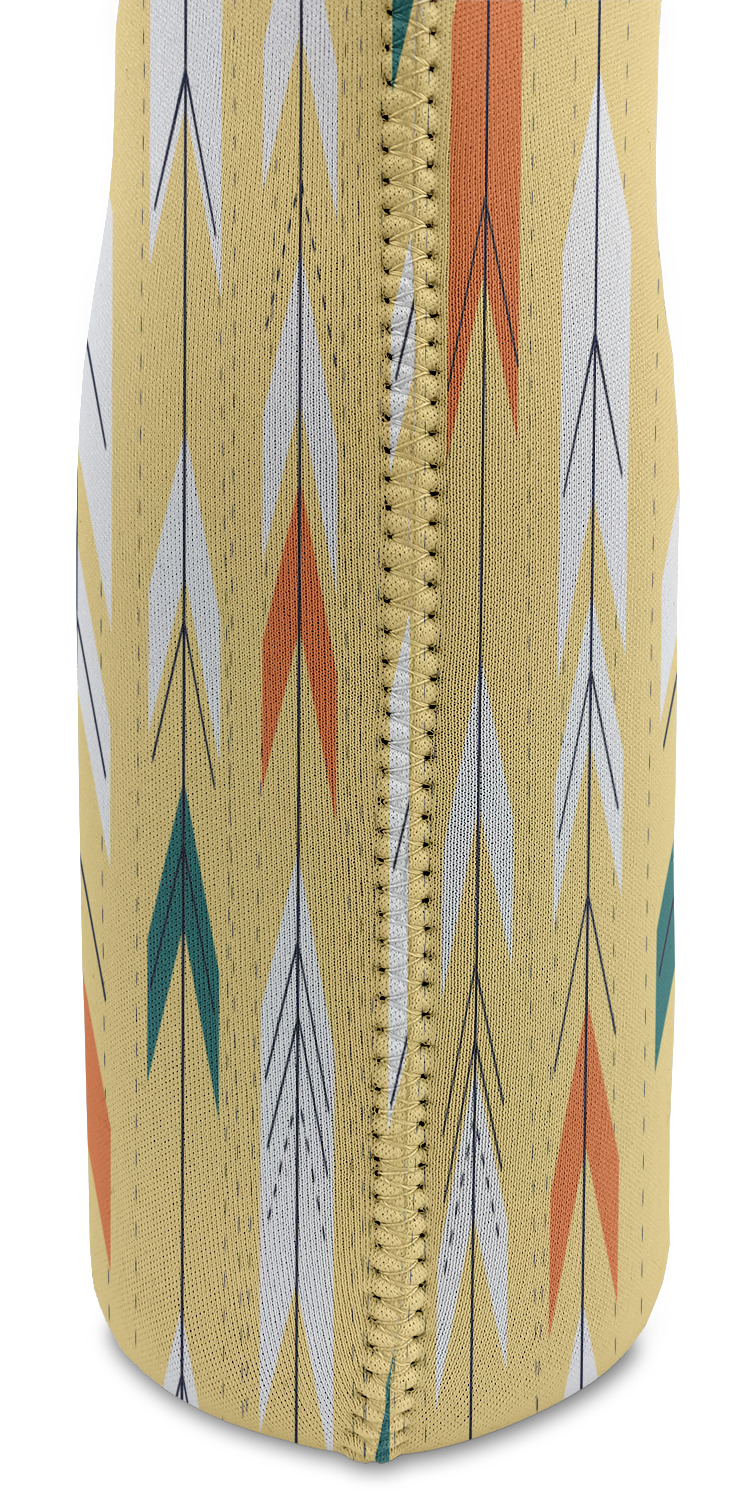 The secondary pattern is a fun light yellow with arrows of white, teal, and orange. This is a fun contrast with the animals.