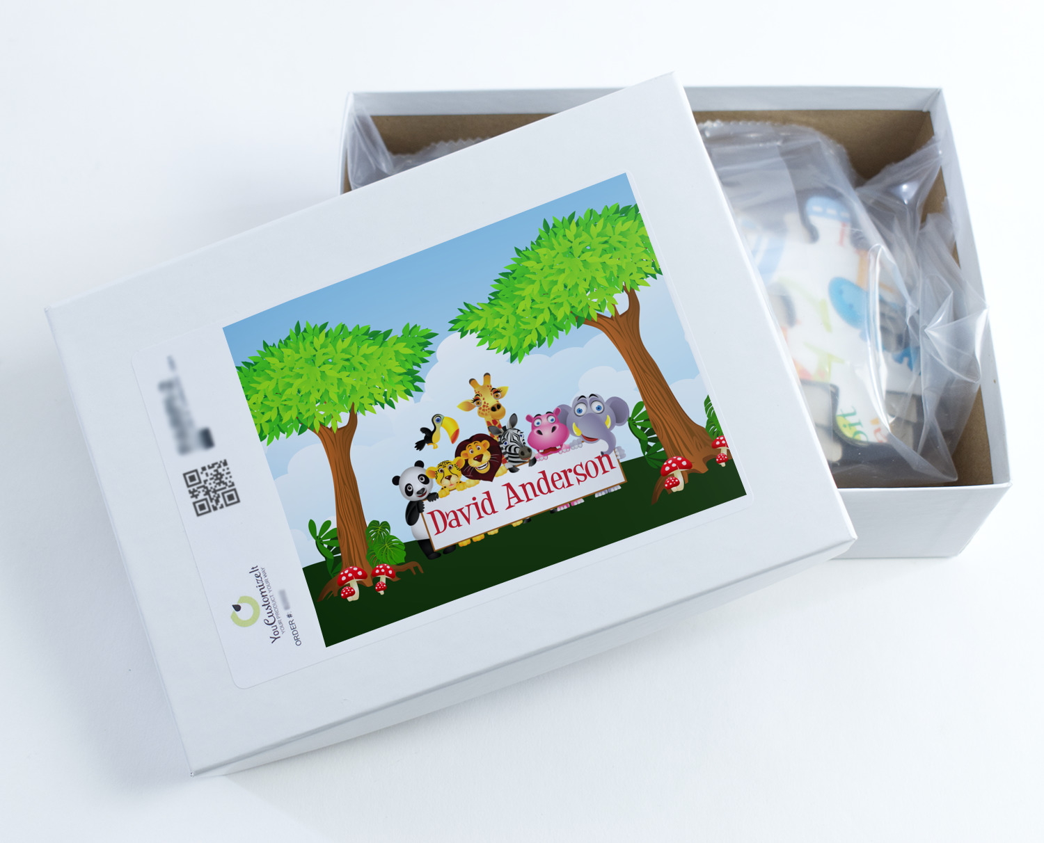 You can also upload your logo or art that you or your kids drew. To create more challenging jigsaw puzzles, you can create a pattern from with your logo or artwork. You can also add other elements such as text or personalization.