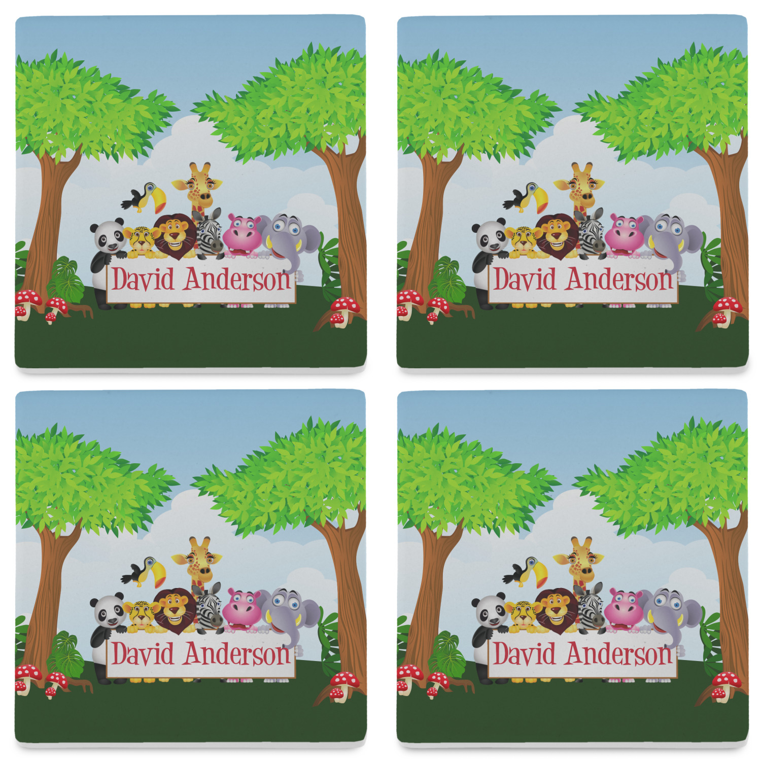 By default, the 4 coasters all have the same design on them, however, you can change that and have a different design on each one of the 4 coasters. The choice is yours.