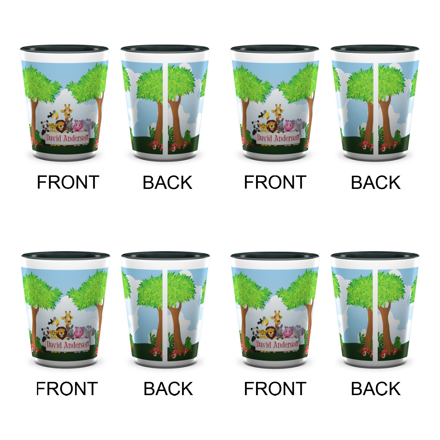Made from ceramic these shot glasses are printed in full color with the design of your choice. These are a standard 1.5oz size and stand 2.25" tall. Available in a full white ceramic or a two-tone with a black color inside the shot glass. Buy a single or a set of 4, all of which can be designed separately to get you just what you want and need.